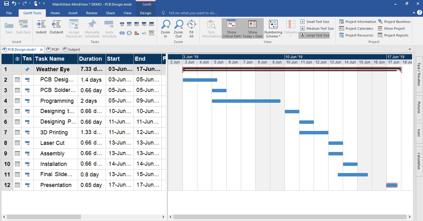 My final project presentation is on 17th June.I downloaded MindView software to made a Gantt Chart to manage time well.