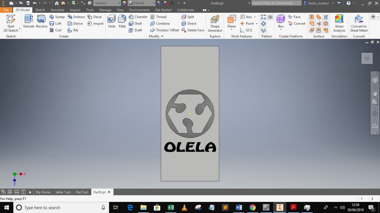 i desided to make my name part of the mould bt it was it was not extruding so i desided to print it without the name