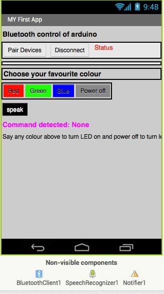 I want my app to control a LED via bluetooth. I have the option to use the button or my voice to give command.