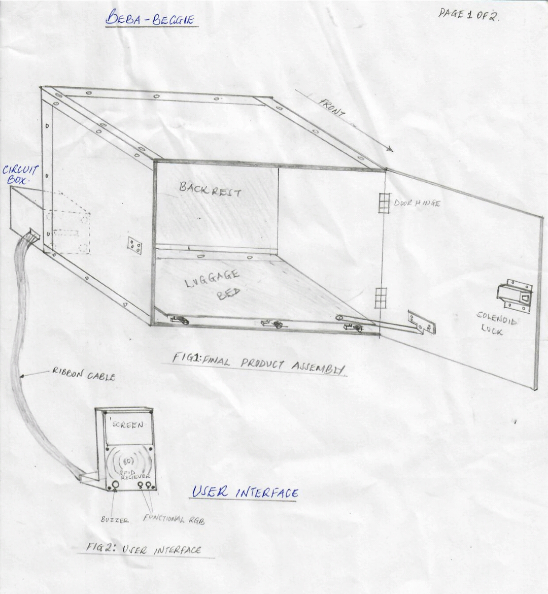 Beba-Beggie is a swahili word that means "carry a bag" thus this project is about a temporary luggage storage facility that provides persons in CBD set up an electronic luggage storage solution that is secure, convenient, temporary and affordable. The e-storage system employs the use of an RFID (electronic based identification system) card, tag or sticker that is issued upon payment of a small fee depending on the storage space, weight and or time. The RFID card/tag/sticker is issued for collection later on, relieving off the inconvenience of walking around with them (luggage). The card is swiped to either unlock or lock a solenoid lock system (electronic operated lock system), the unique ID in the card only allows for access to the particular dock per particular time.