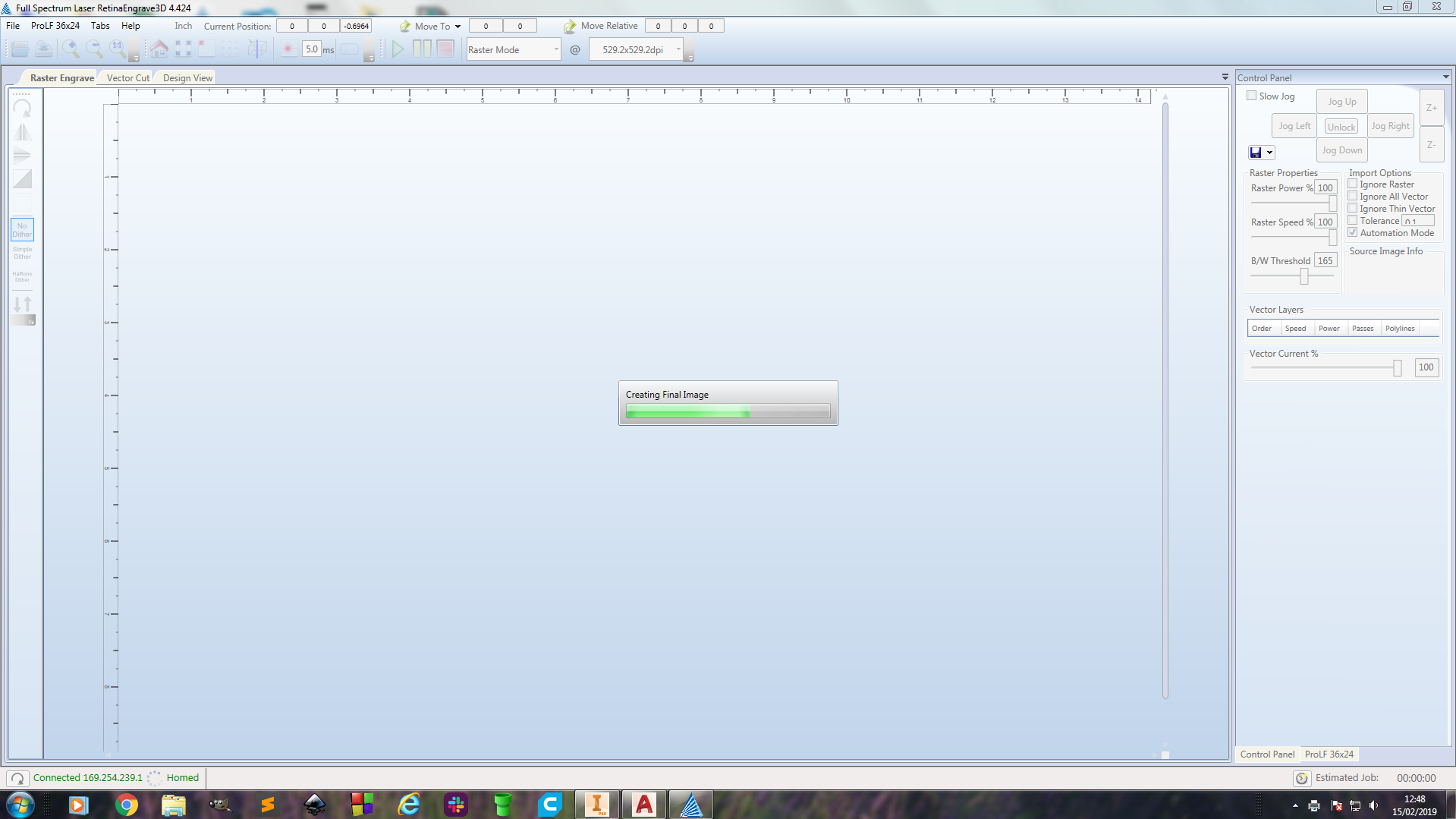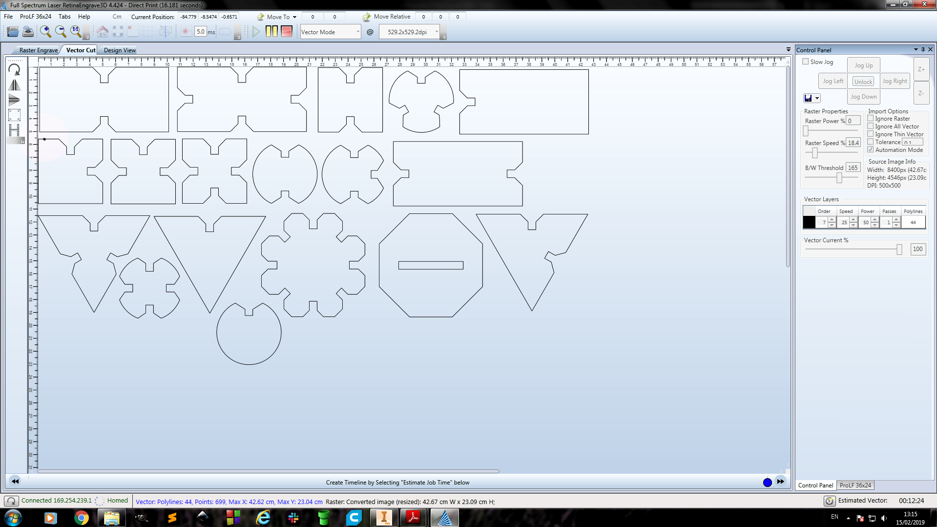 After preparing the print layouts, I then switched to Full Spectrum Laser RetinaEngrave 3D cutter software software which is what the laser cutter would directly get commands from.