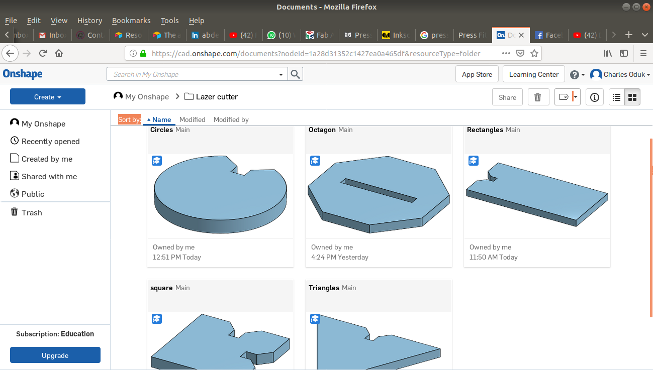 I designed my fit press files using the online ONSHAPE platform after which I converted the files into dfx files and dowbloaded to my local machine. From here I would easily open them in other relevant softwares such as Adobe illustrator,inskcape etc. Among this I settled on inkscape. I designed the following press fit patterns: