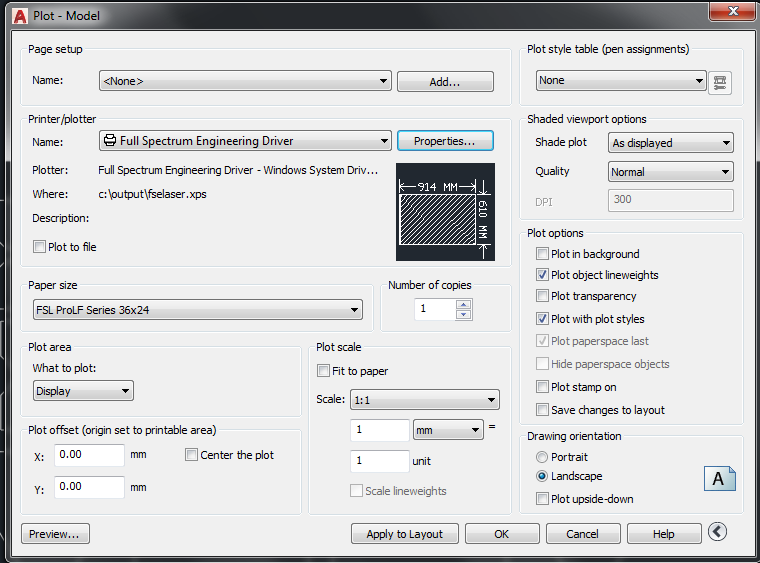 The plot model parameters were set as below: