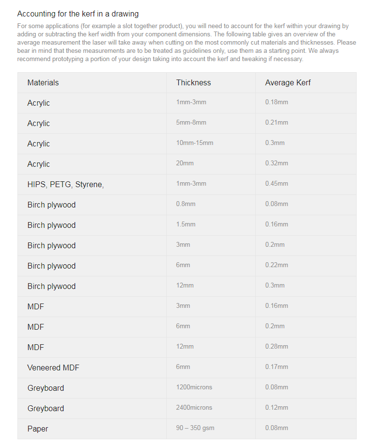 The kerf for this machine was at 0.1mm which served in as just the right allownace I would need for my grove clearance.