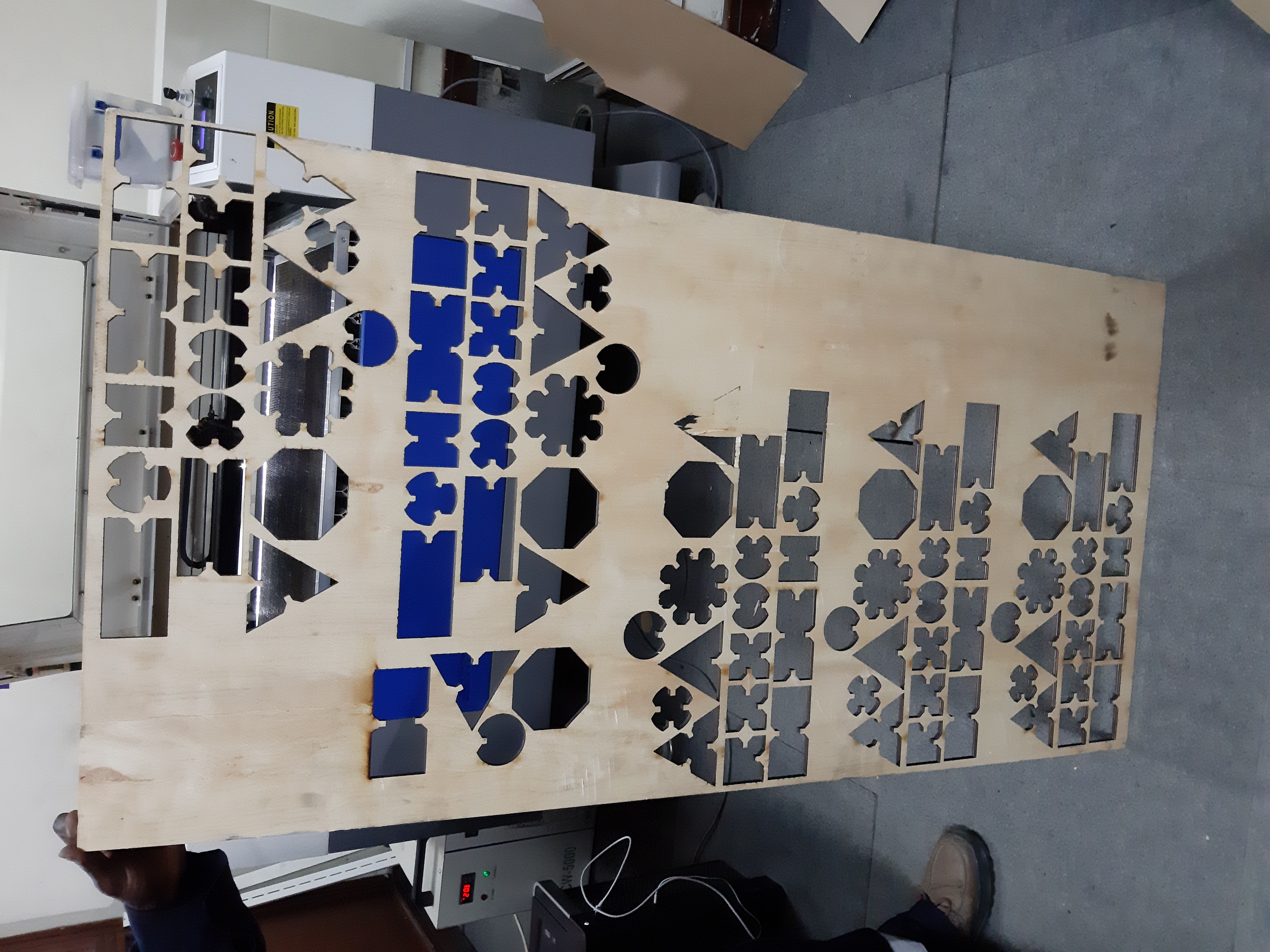 I thus will have a total of 90 fit press pieces. All the designs had a grove of 6mm to compensate for the material thickness.