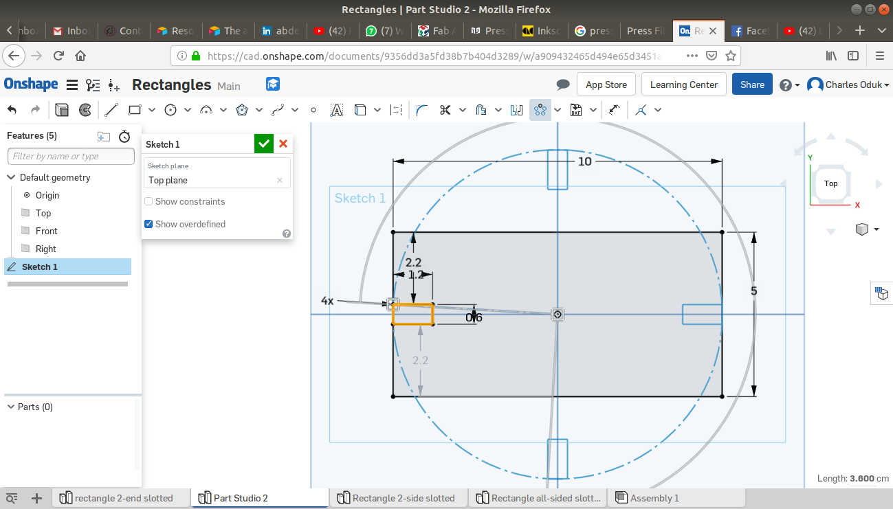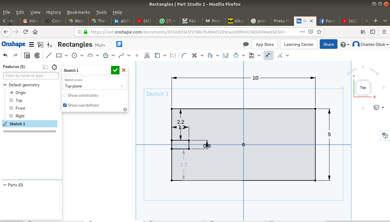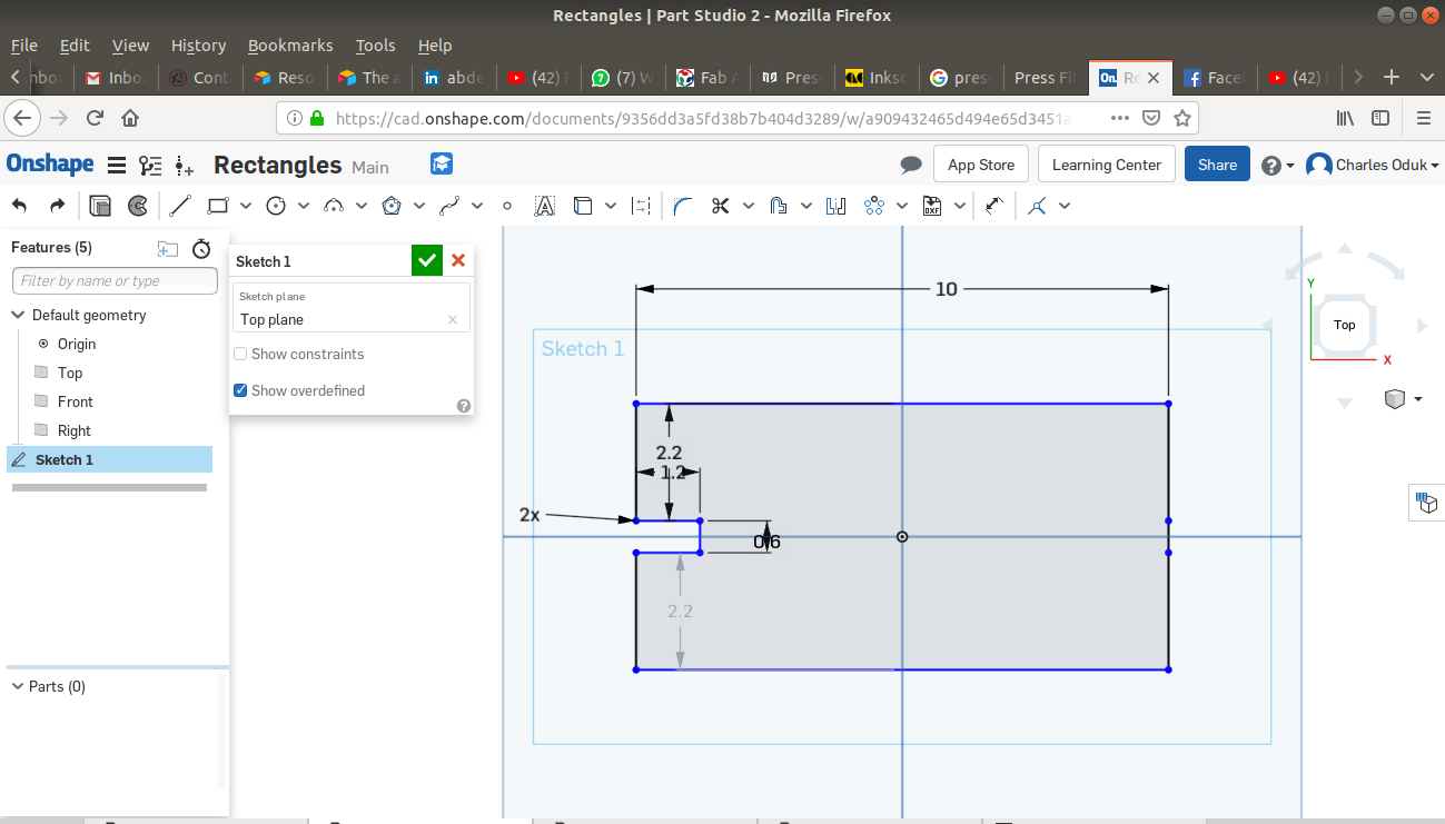 The ONSHAPE online CAD platform allows the user to both design 2D sketches and transform them to 3D objects. Below are steps I used to create my 2D sketches. Dimensions are in centimeters.