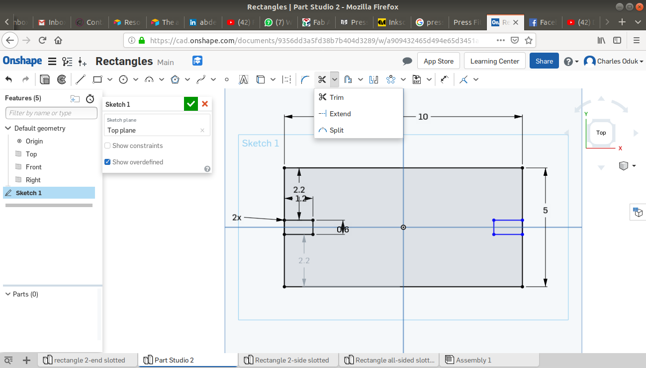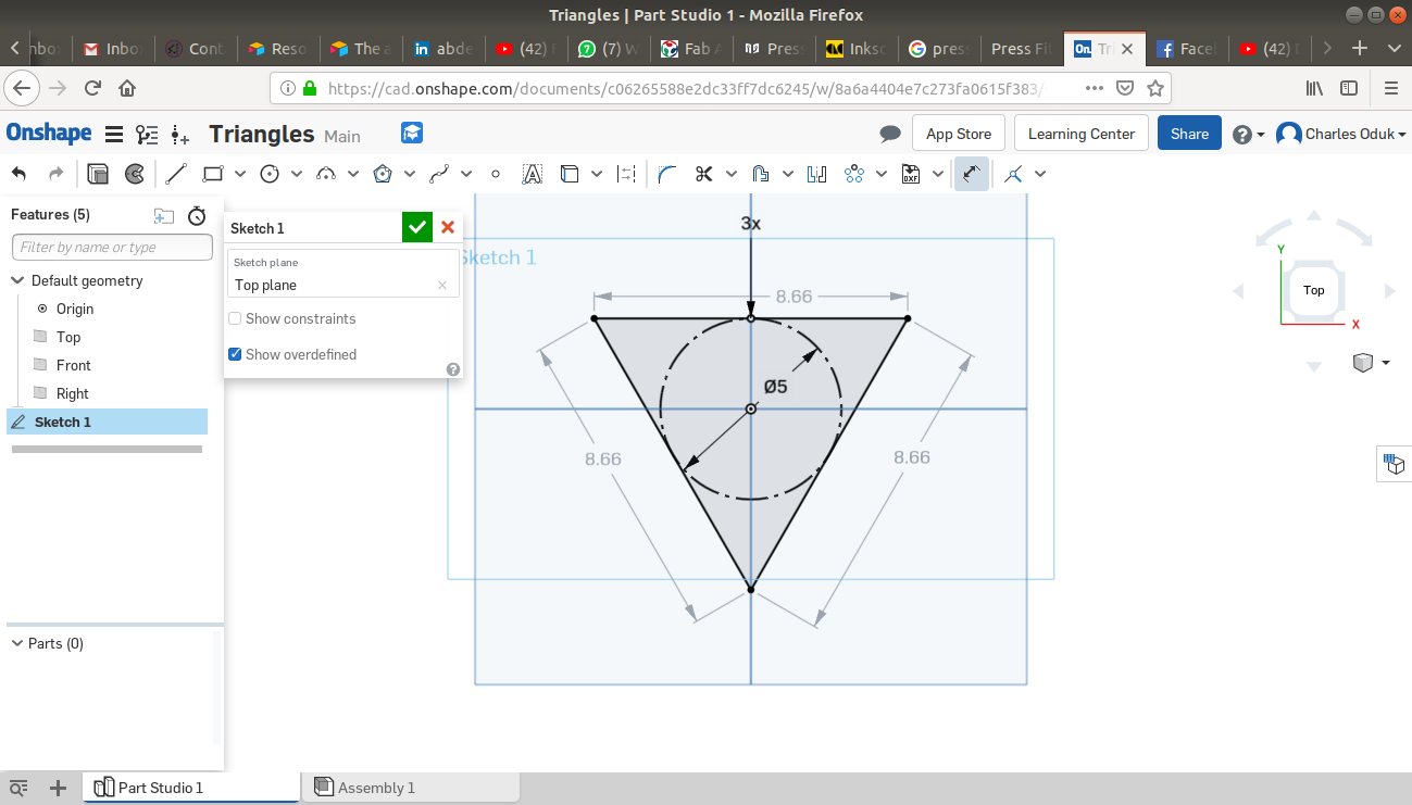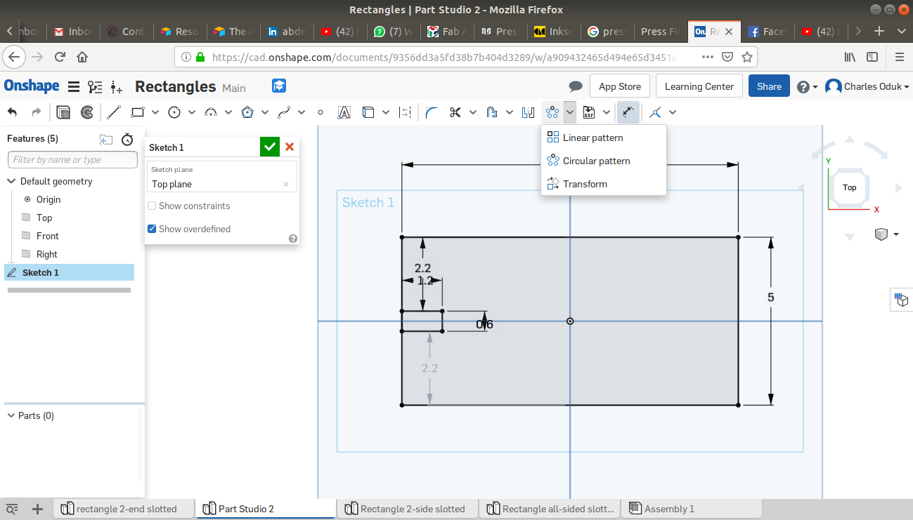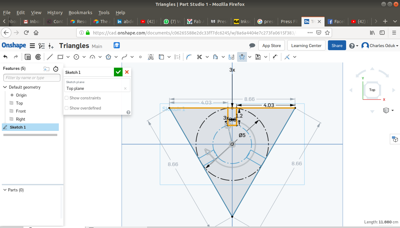 The ONSHAPE online CAD platform allows the user to both design 2D sketches and transform them to 3D objects. Below are steps I used to create my 2D sketches. Dimensions are in centimeters.