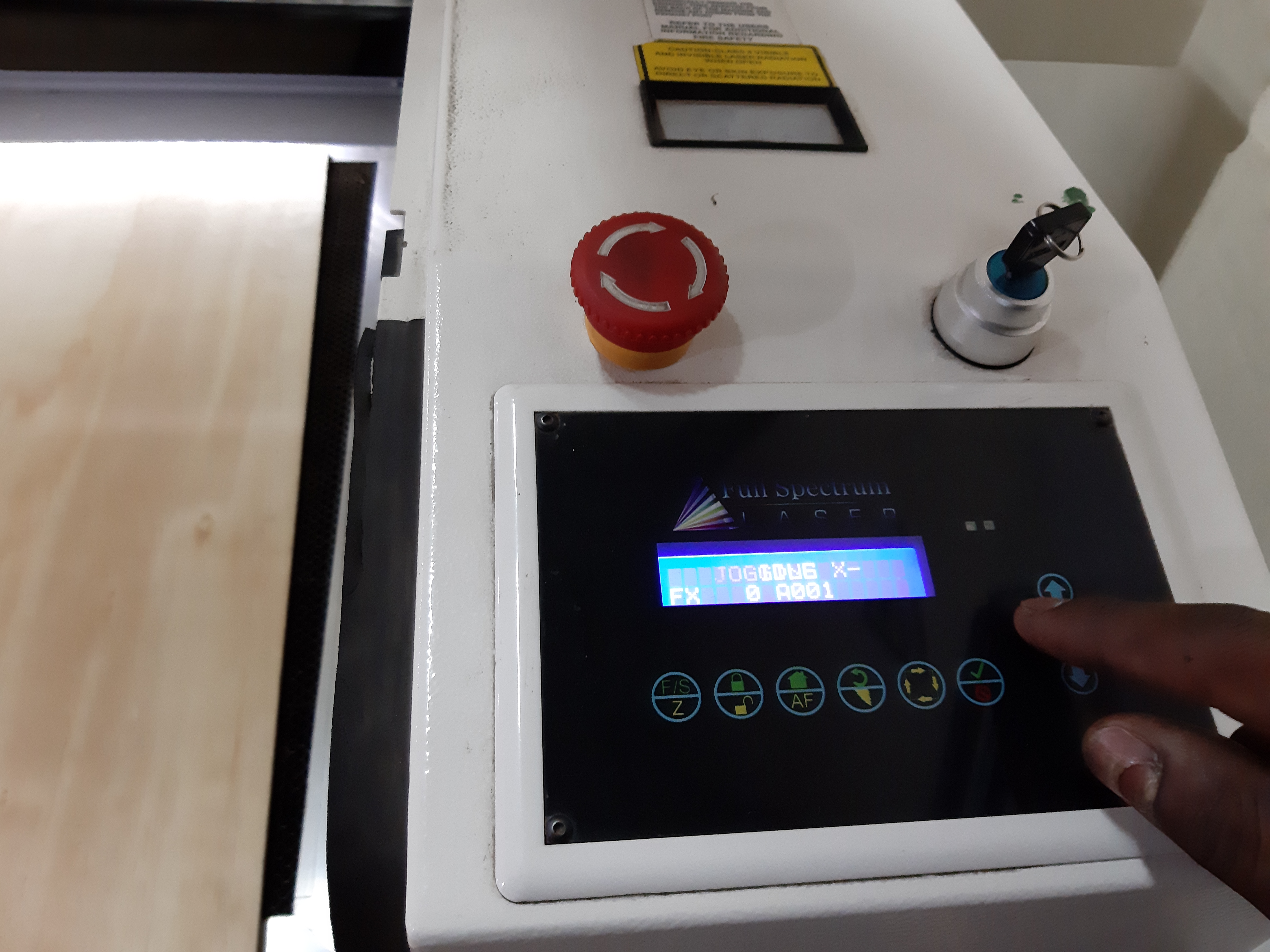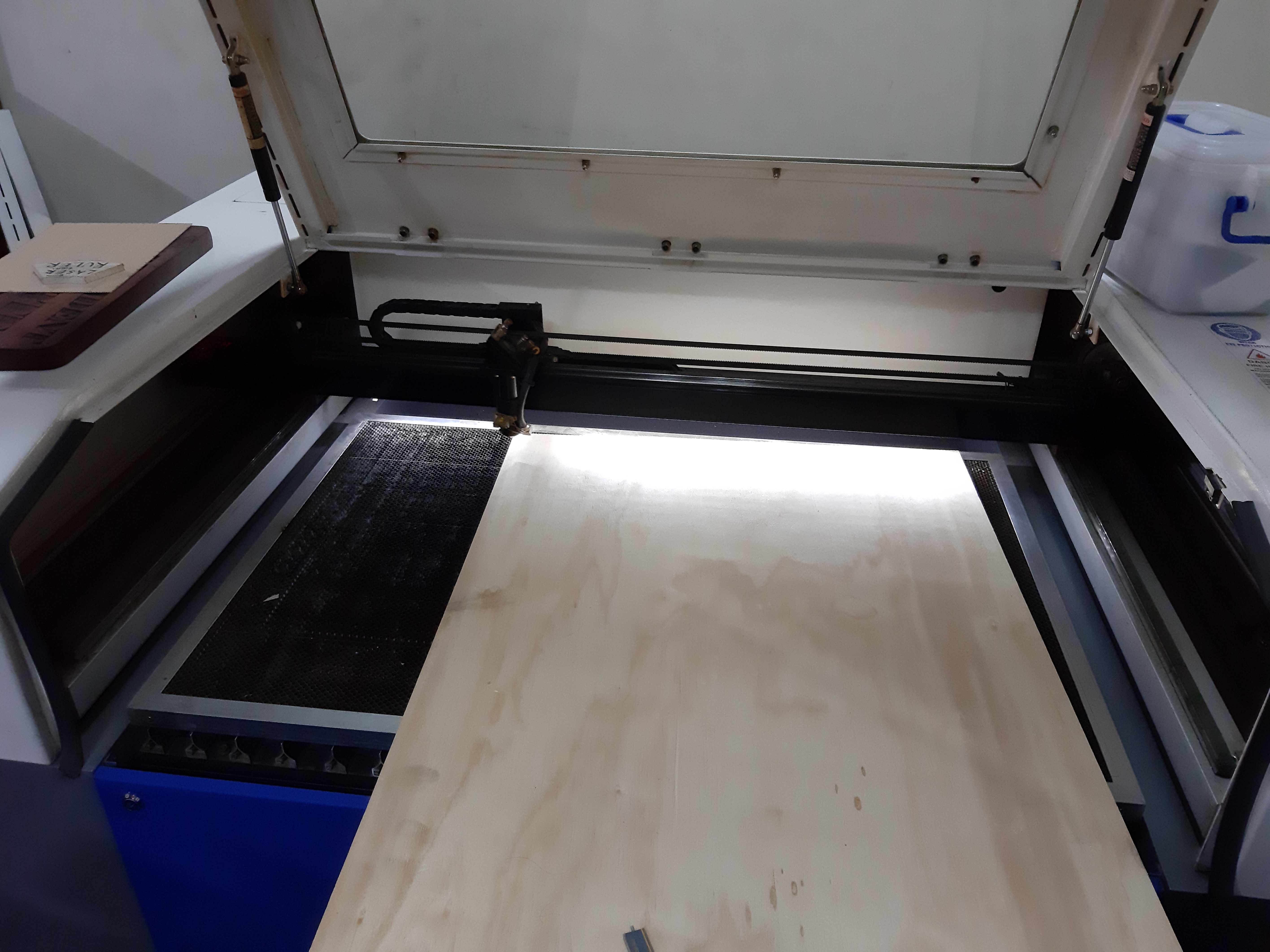 Setting up the laser cutter with the workpiece.