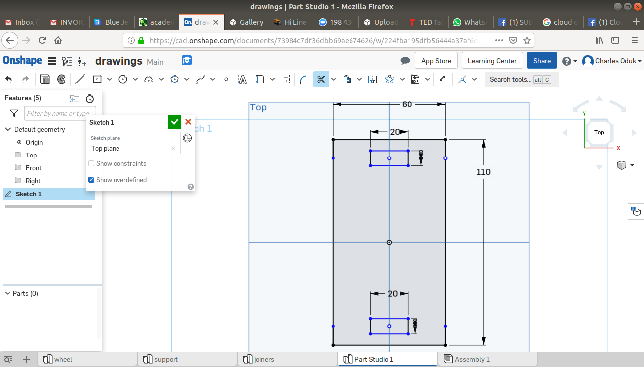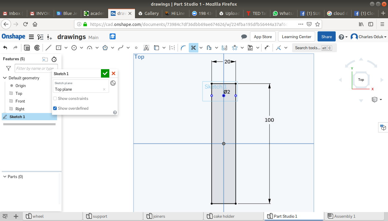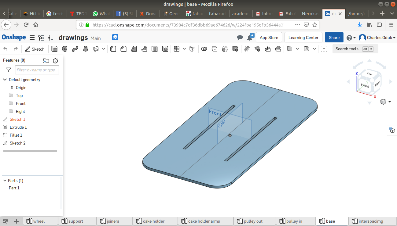 I then proceeded to design the 3D designs on the free online ONSHAPE CAD platform.