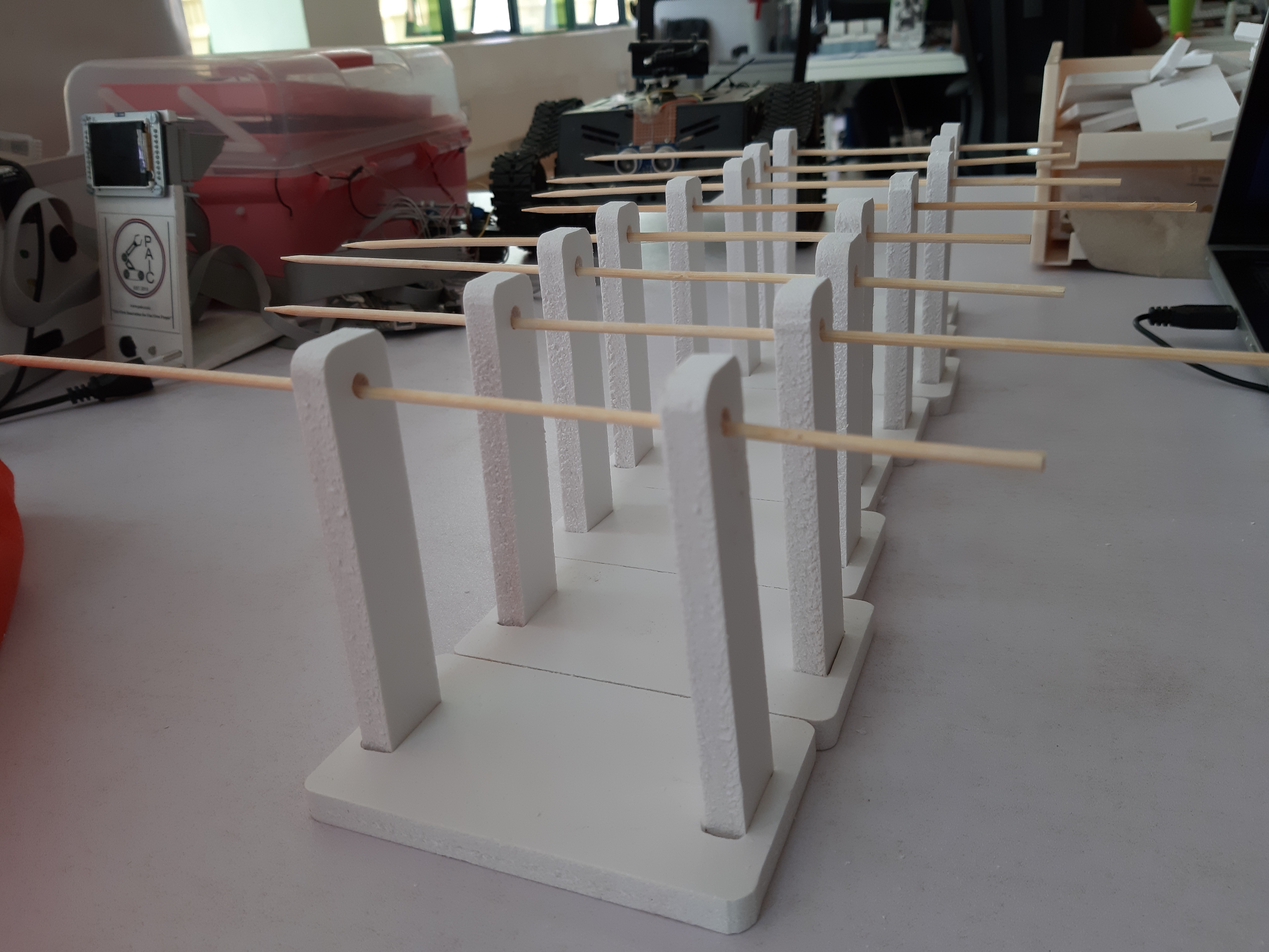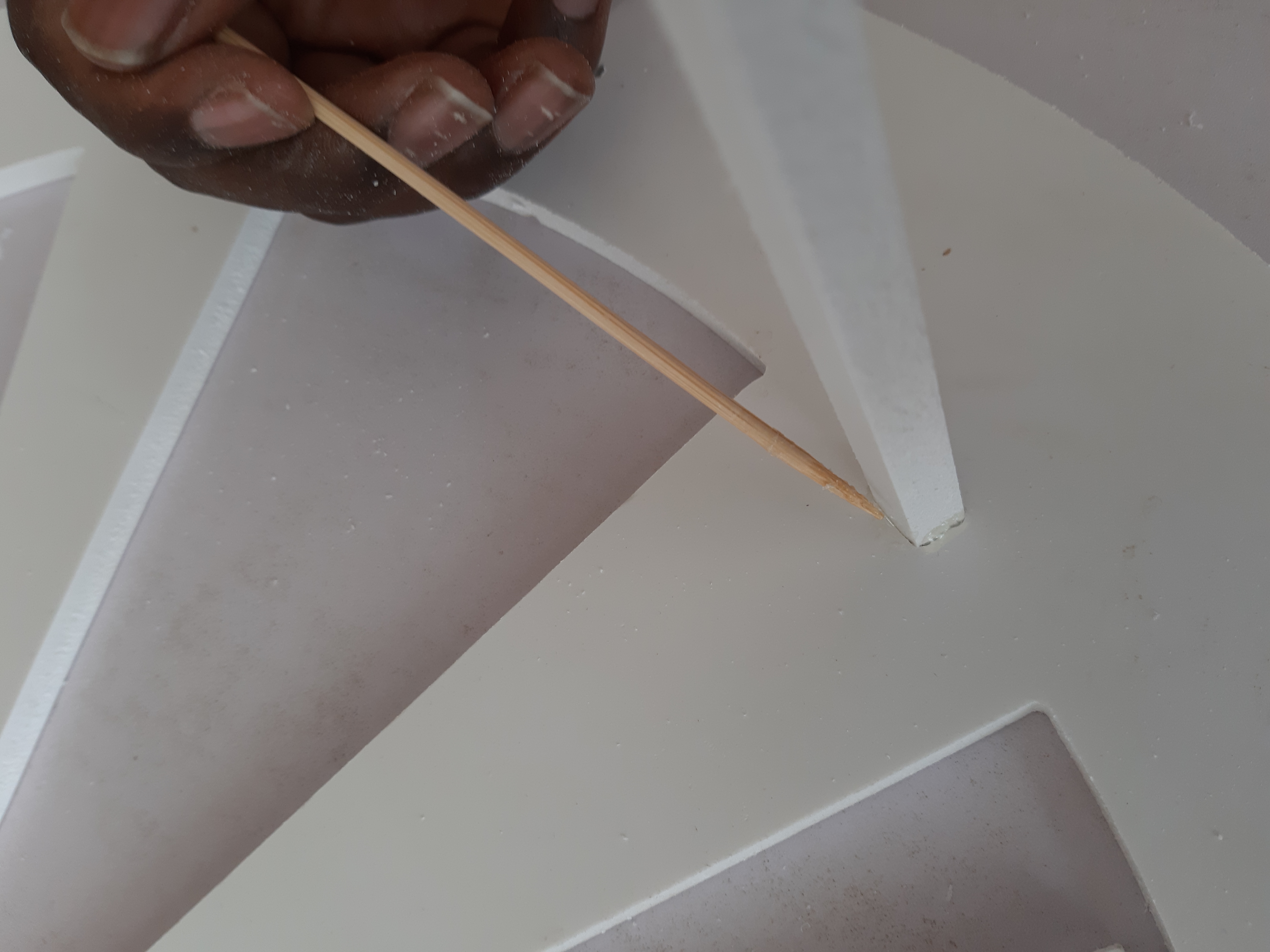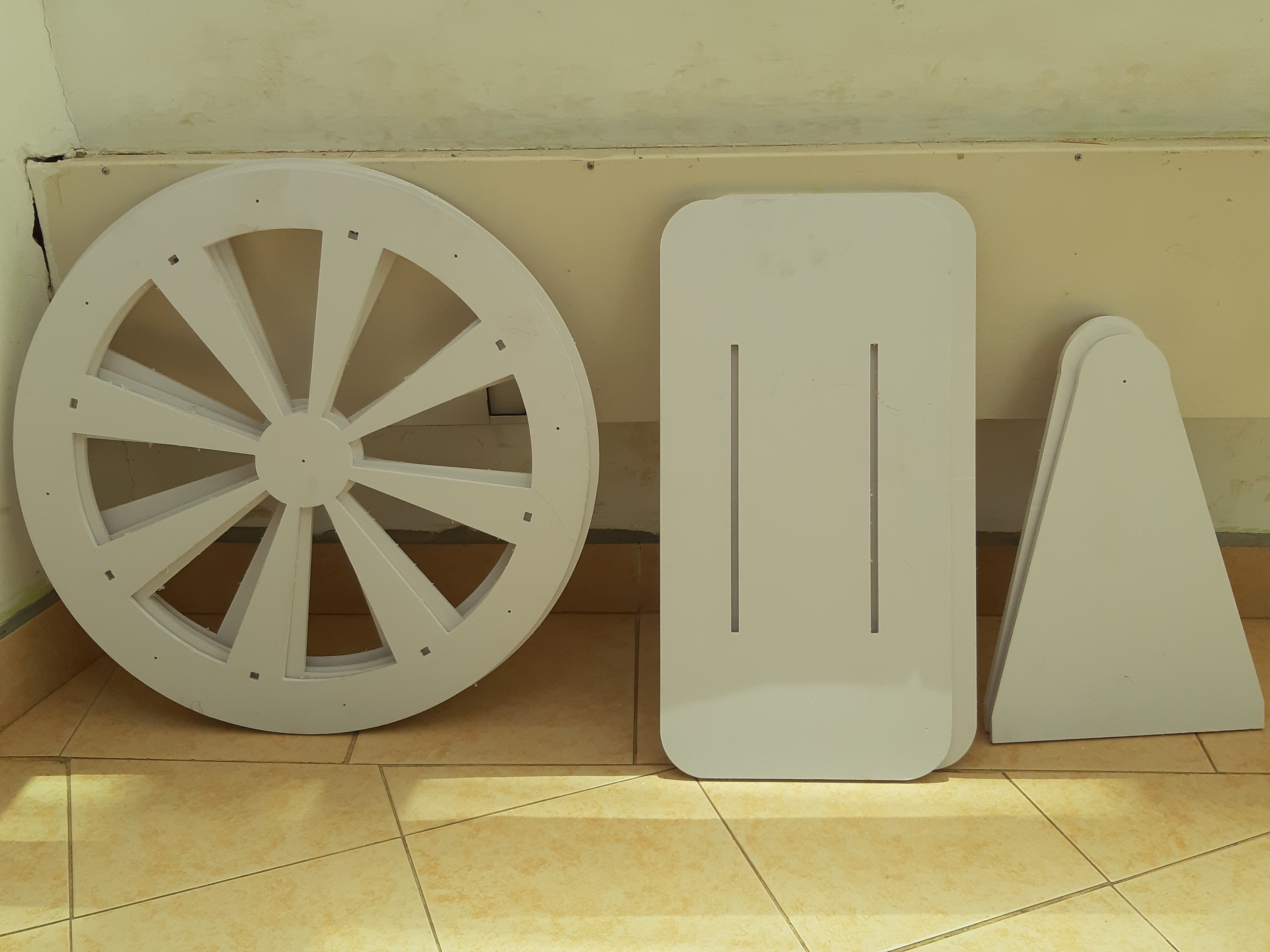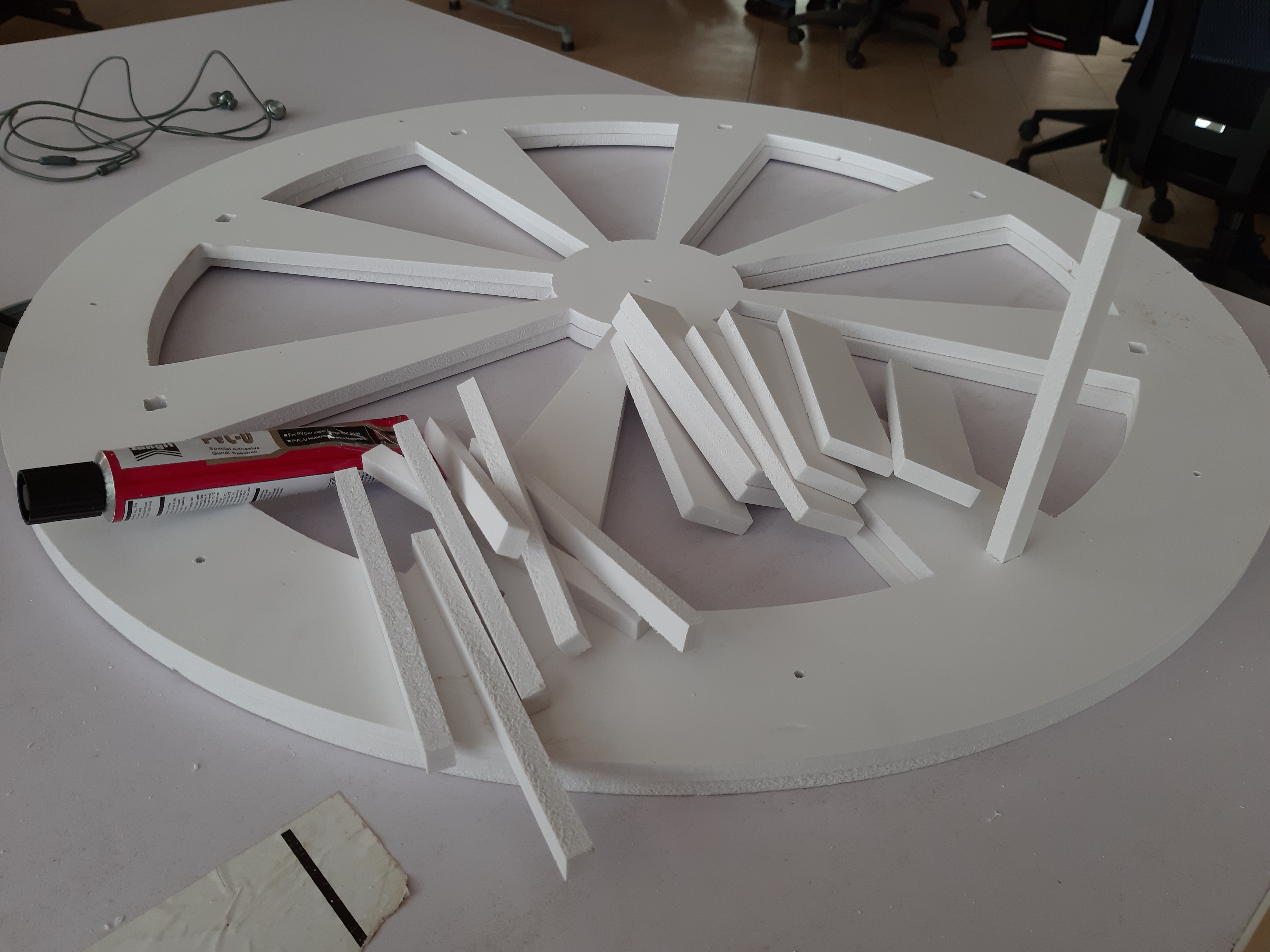 I used skewer sticks and PVC glue to link and assemble the already machined ferris wheel parts as shown below: