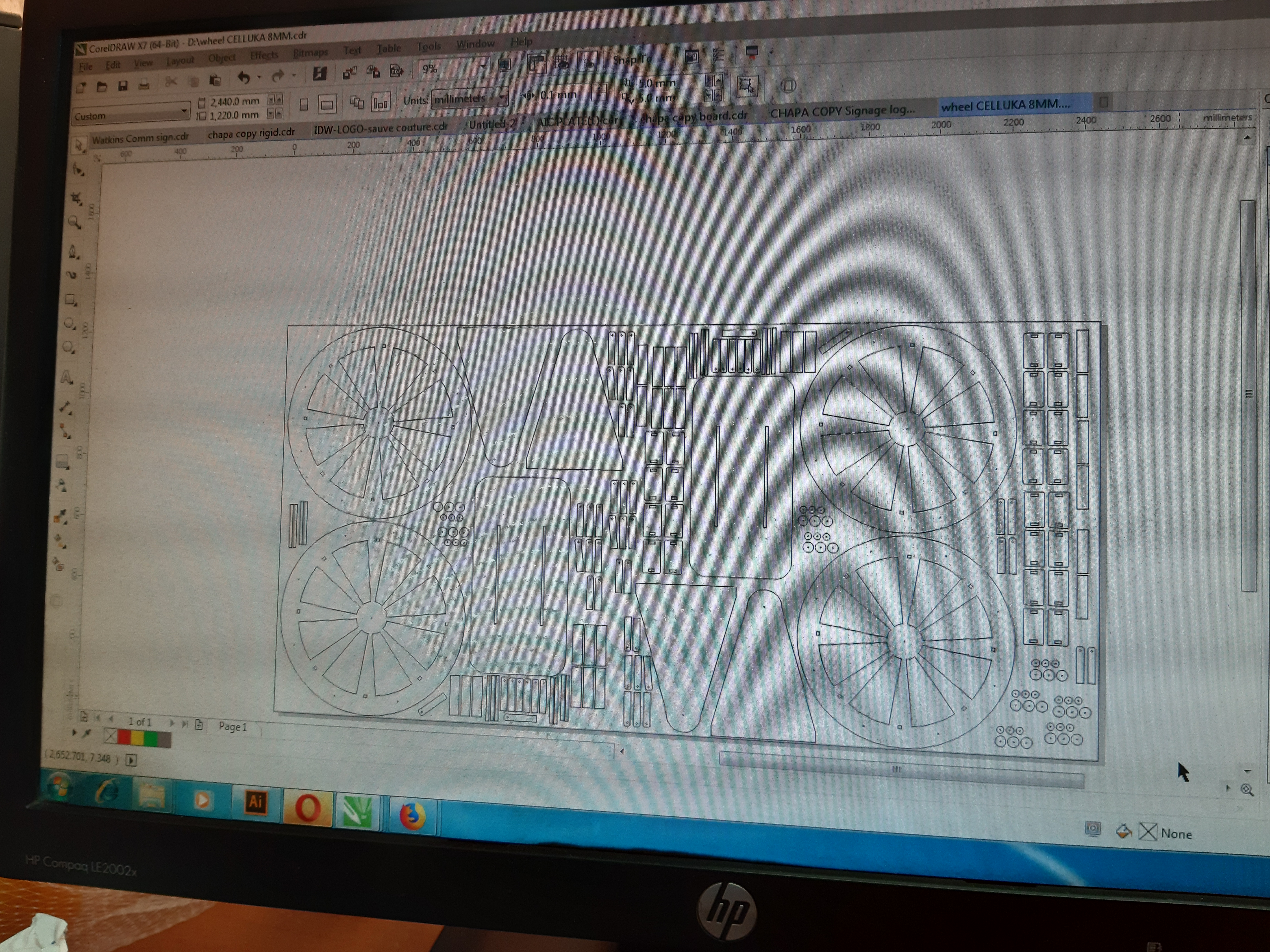 The shapes were then organised on a 8ft by 4ft white AlucoBoard(also refered to as Forex Board), which is basically a softer but relatively strong version of PVC plastic.