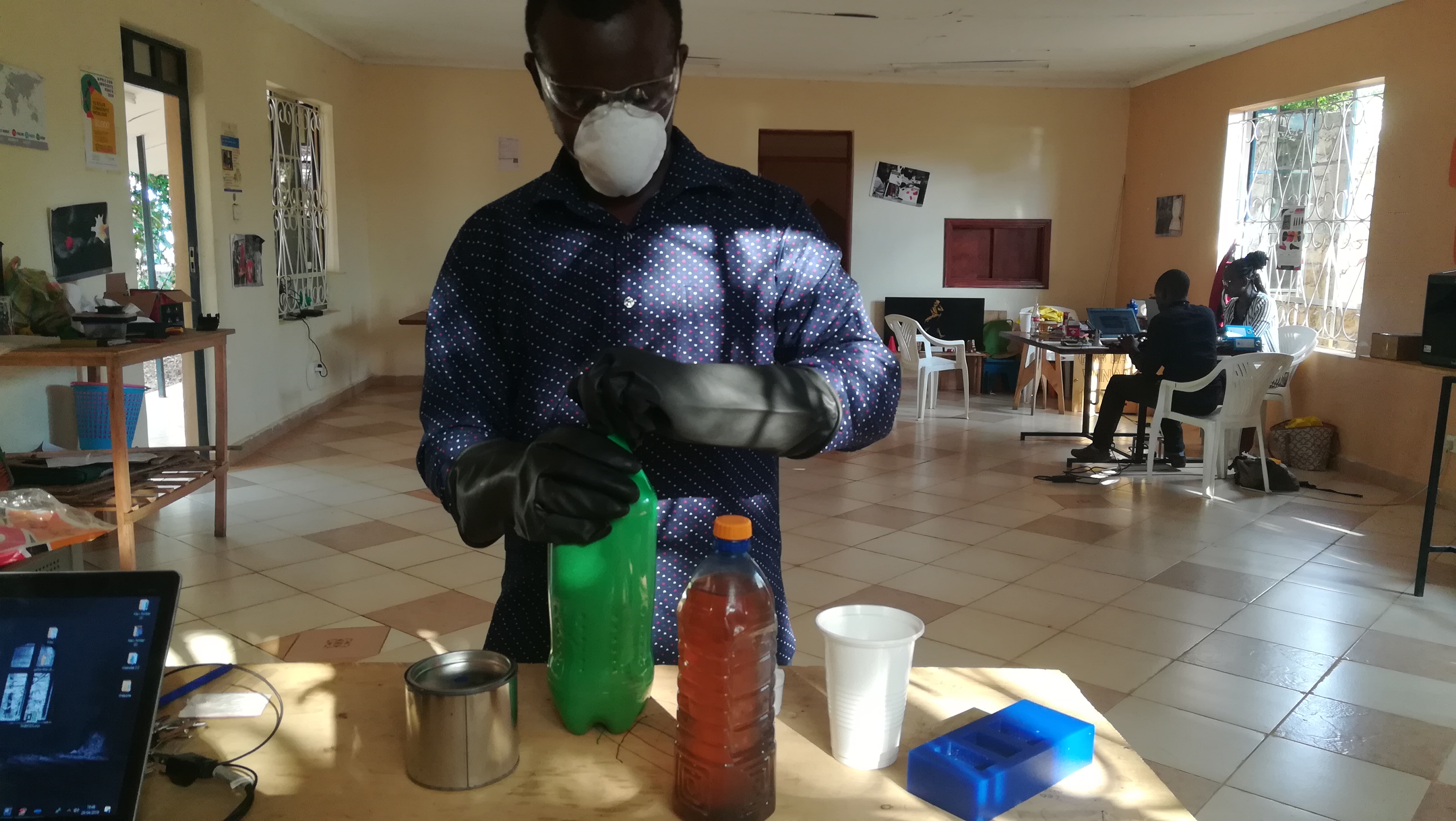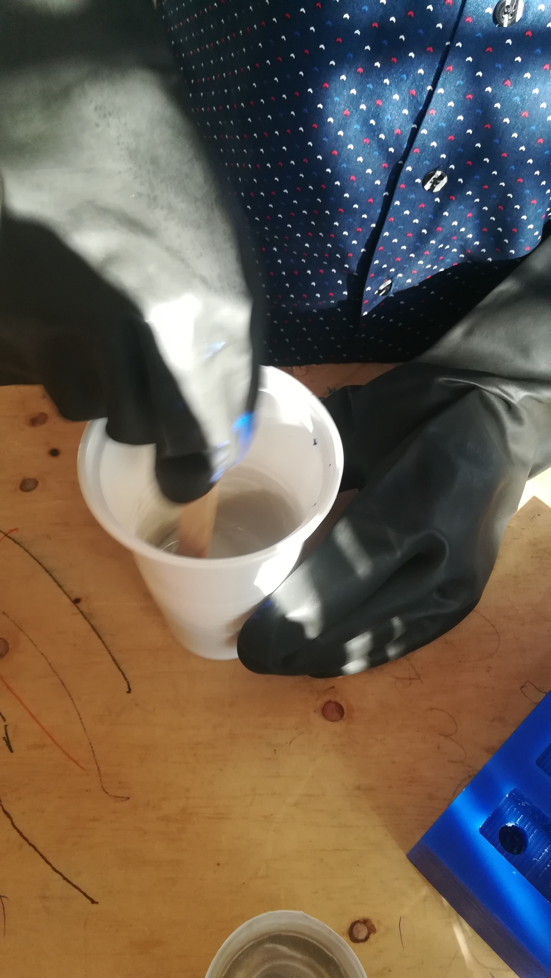 For casting I used epoxxy, and it was delivered in measured quantities to the lab. The epoxy was to be mixed in the ratio of 2:1. From the size of the bottles it is clear which bottle is for 2 and which one is for 1. I also used colour blue.