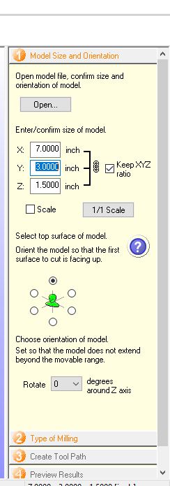 The next stages involved providing the size of the block and the scale if need be. The next stage involved providing the milling parameters for the operation |