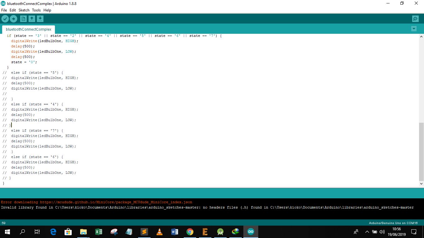 For programming I hard to connect the bluetooth module and test its functionality with my board. From the test the following deductions were made, the board received the required amount of power as the ground and vcc pins were connected accurately. However, the RX and TX pins were not connected in the correct order with the atmega 328p pins, they were interchanged, but luckily the connection to the board was through jumpers this was easily corrected.