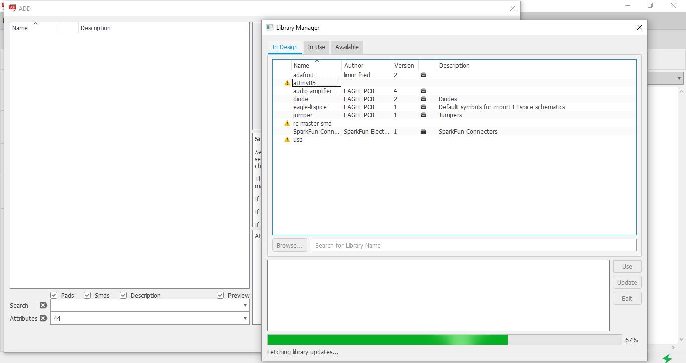 I designed my circuit using eagle the first step was to add parts to my circuit diagram