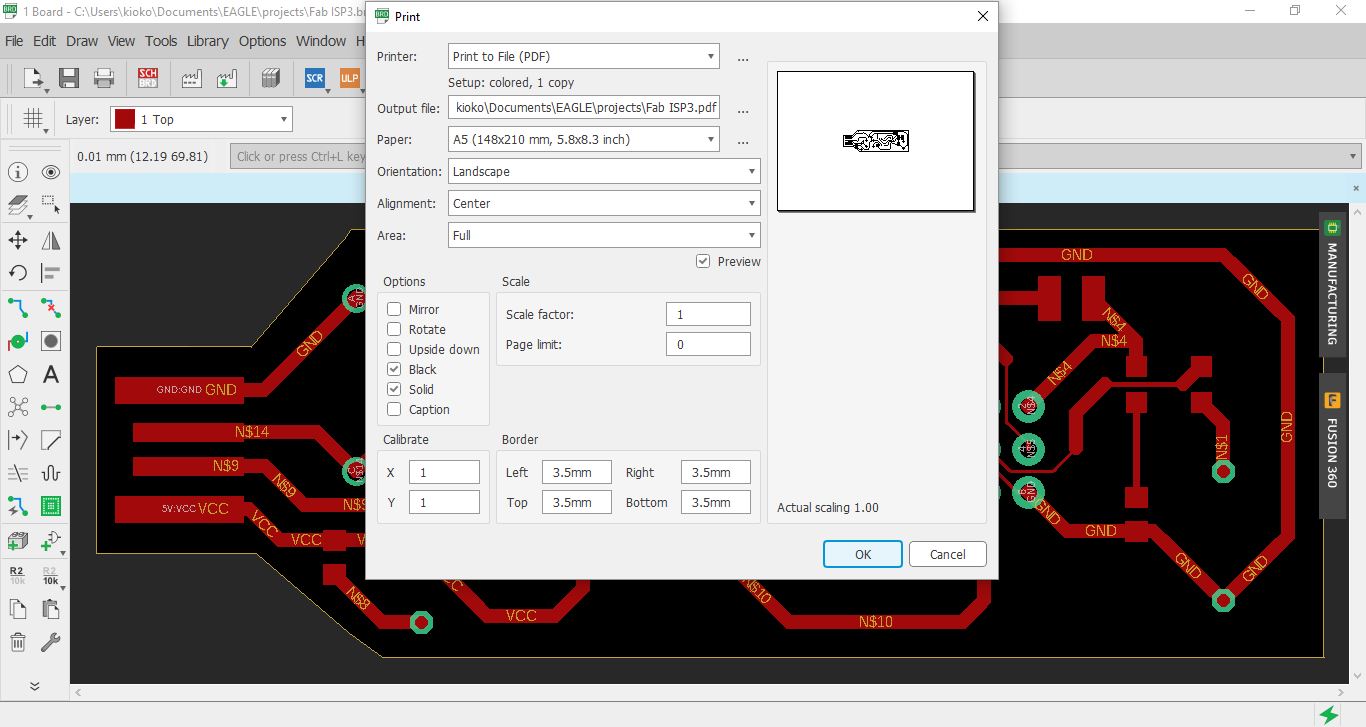 For cutting out the board a 1/32' end mill is used and the other parameters remain the same. After genetrating the tool paths, an option of saving the generated file is provided download the file and input it at the vpanel interface for the srm20 machine.
