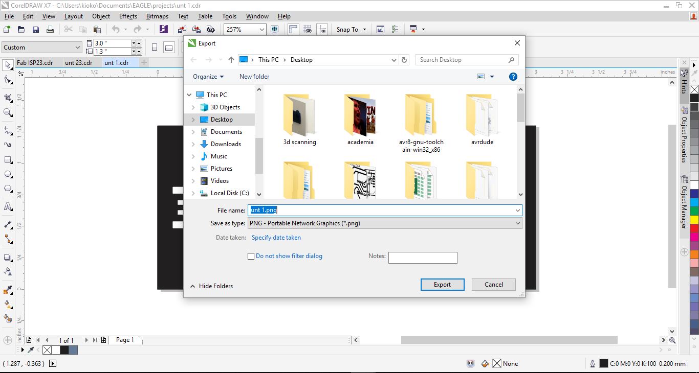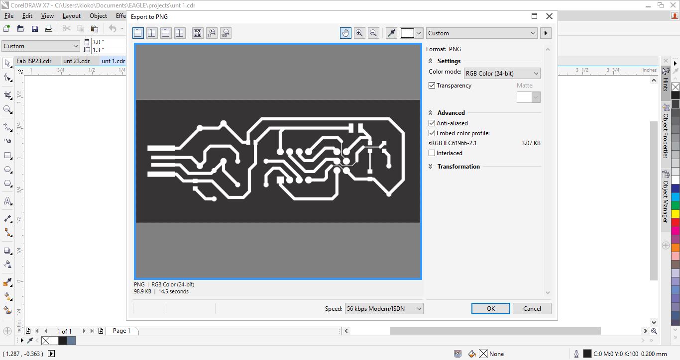 After editing the images out the next step involved exporting the images to png format which is required by the fabmodules processor