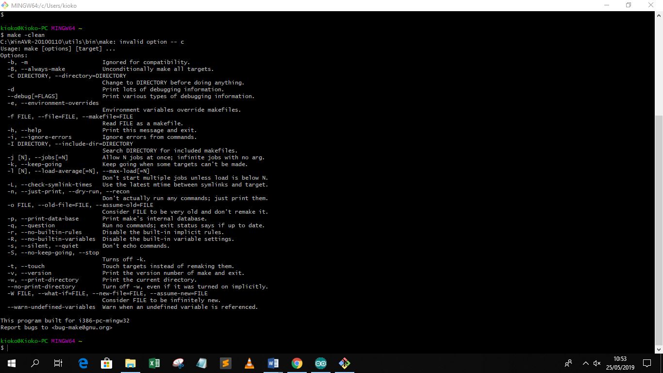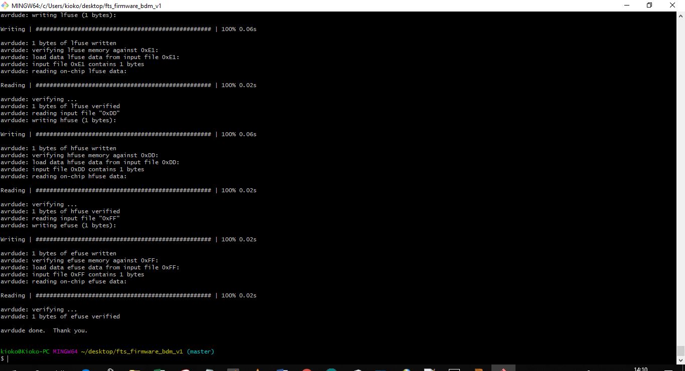 The next step was to navigate to the firmware folder using git bash, however before this the arduino has to be set up prior using the steps indicated before. After navigating to the folder run the make clean command.