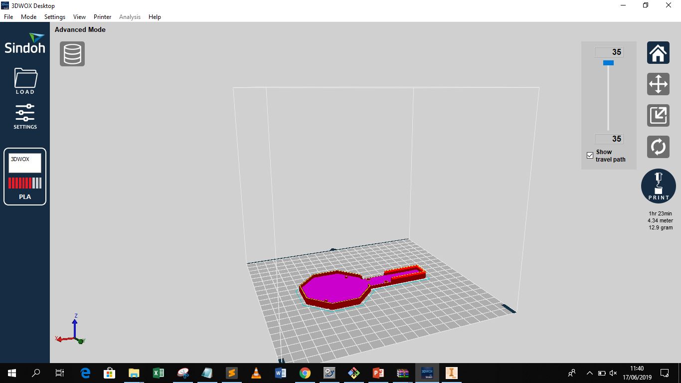 I then imported the OBJ file to the Slicer and generated the gcodes necessary