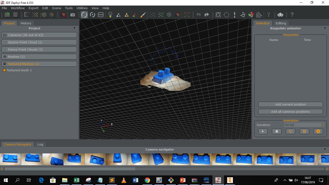 The images are then imported to the software and utilized to generate a textured mesh of varied density of the object. The textured mesh generation has different stages with each improving from the previouse until a dense textured mesh of the object is formed. Then one can export the solid object in the desired CAD format for production.