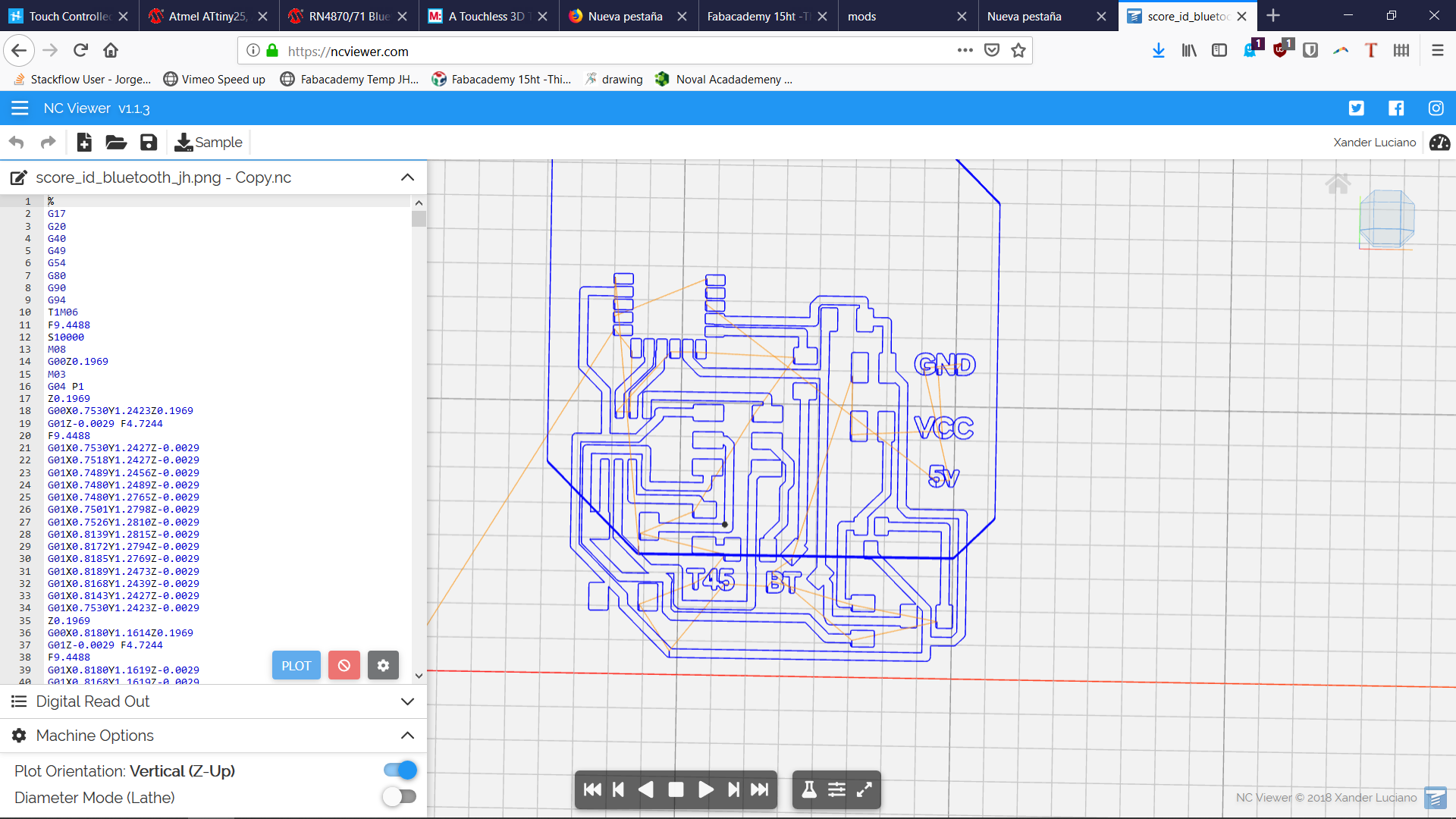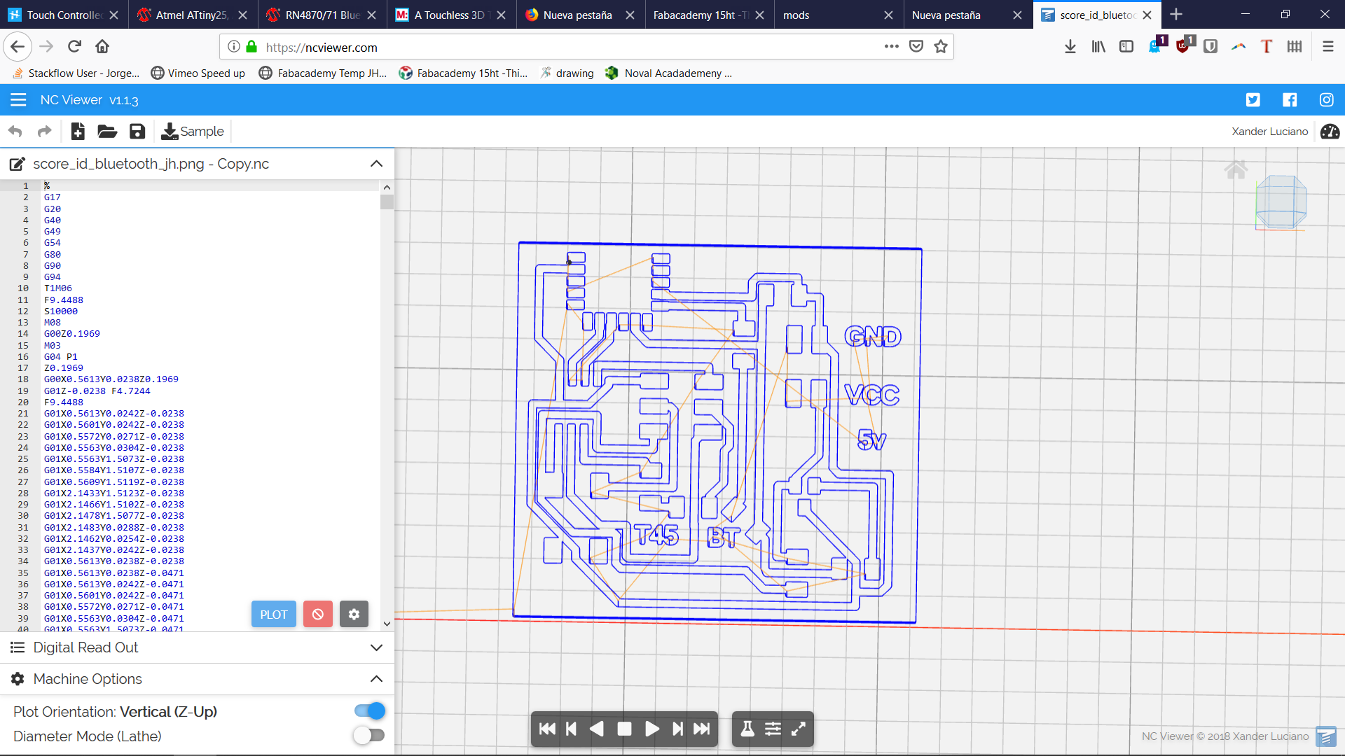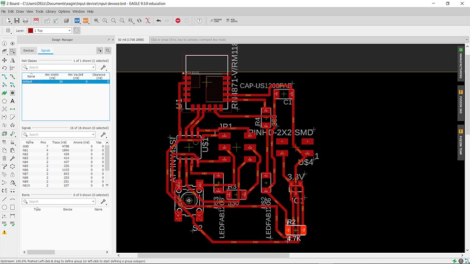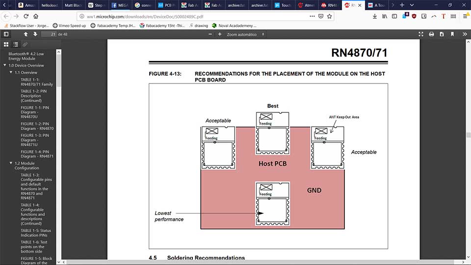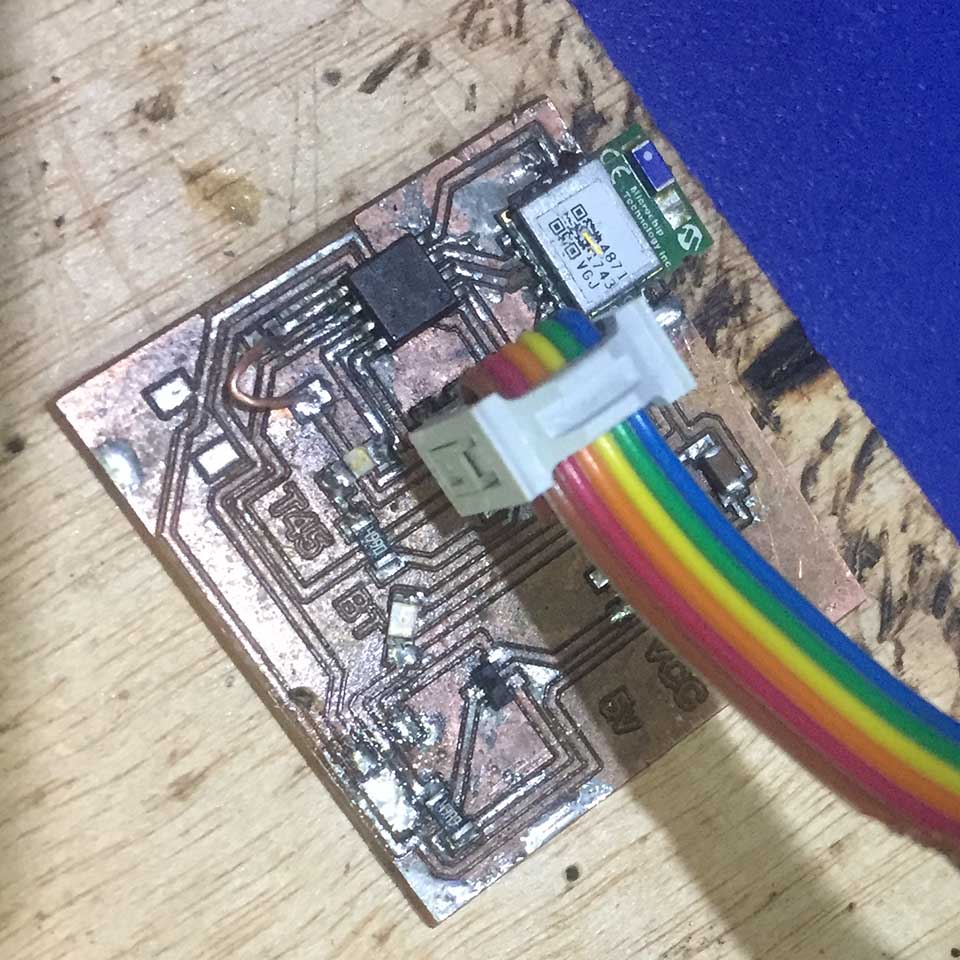 This PCB actually did work for a bit. I unfortunately did not get a video, and later on the fab actually took most of its components in order to create neil's capacitive sensor pcb, and the bluetooth for the rn4871 as part of the debugging process.