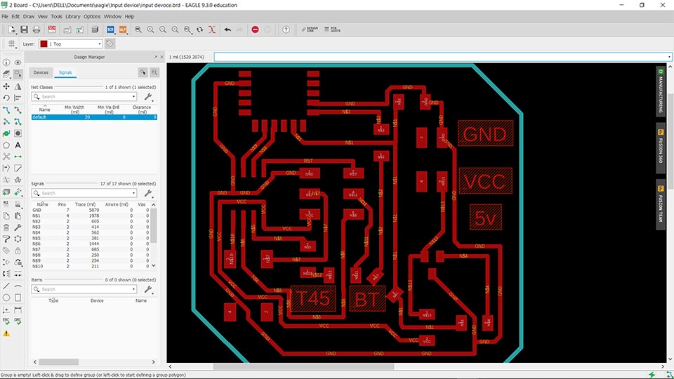 In this case I was planning to use this pcb to send data into the other end, throught the bluetooth module
