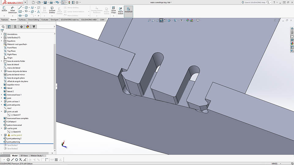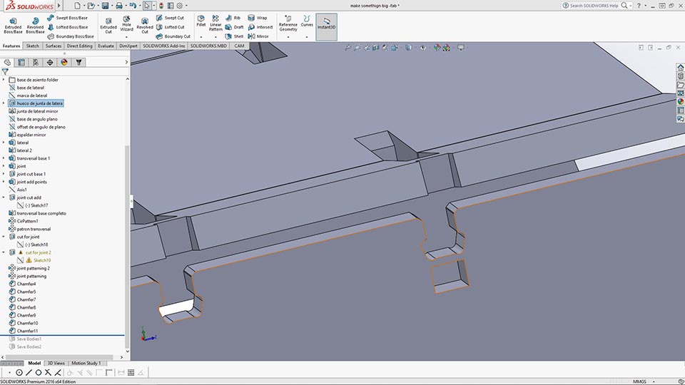 In this case, I was going to implement a second snap fit in order for the joint to become harder to open. Then i realized that that will just brake as that bridge would be the first support of person's full weight and weight multiple force when stoping the person as it sits down. Surely to brake. I decided to instead to decrease a 1mm extra so that the fill will be a pain to insert but never will it brake loose. This joint was initially insipred by the chilean pavilion construction method, part of it we still keep in the fab.
