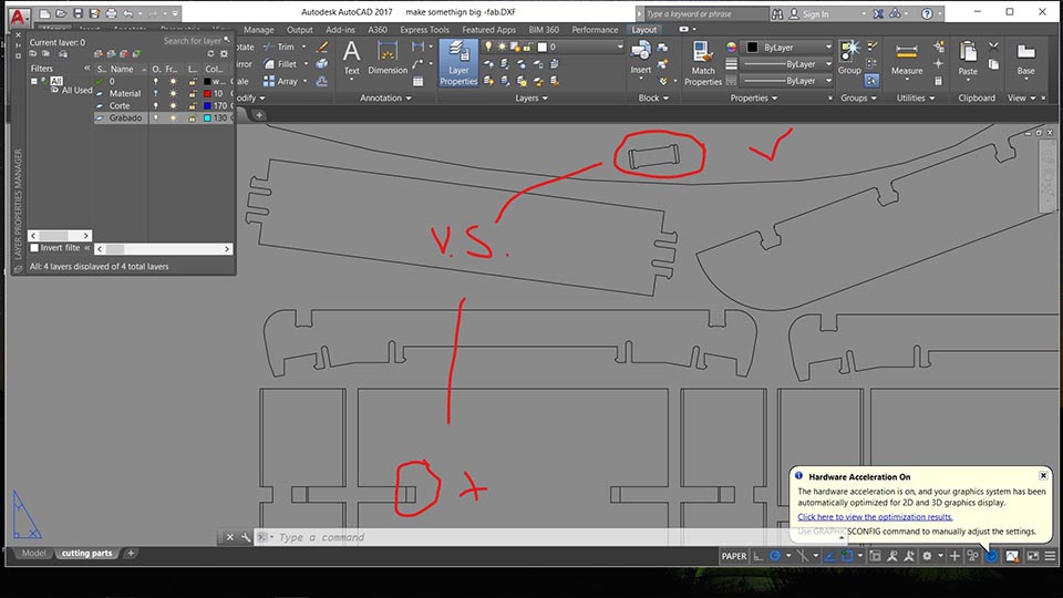 In this case because we where about to cut a 15mm ply, I found it best to be sure what I was cutting would be correct. Last thing I want are wood cuts that cannot assemble and are only good for fire wood.