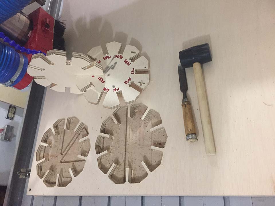Here we see the final sheet of ply and most of the pieces in the assembly. Ready to assemble for cutting portion of the setup.