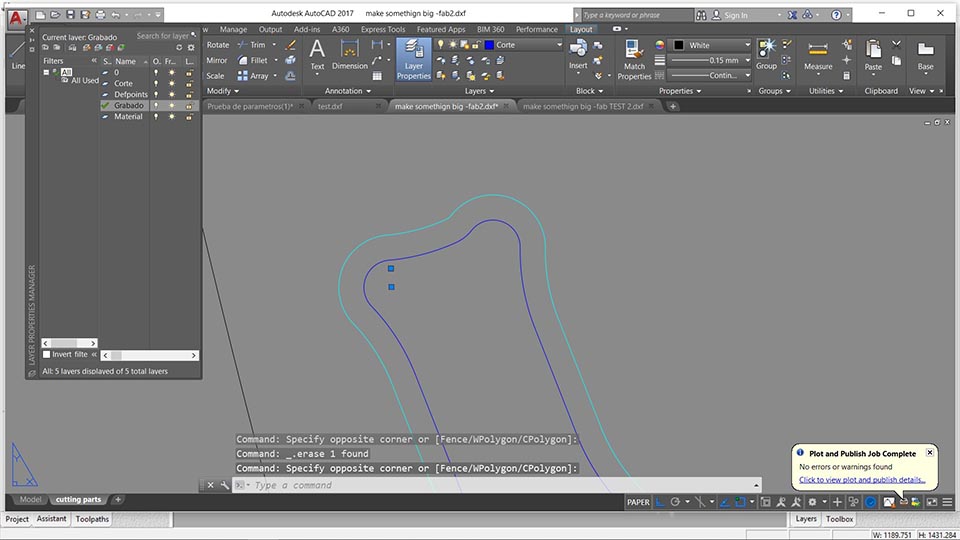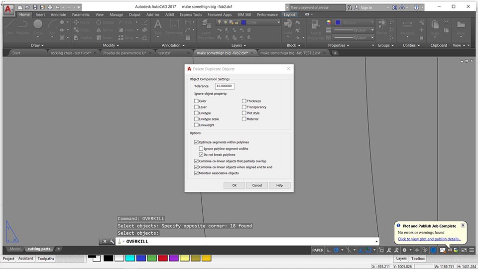I found a couple of not proper trims that didnt show up in autocad but did show up in illustrator.