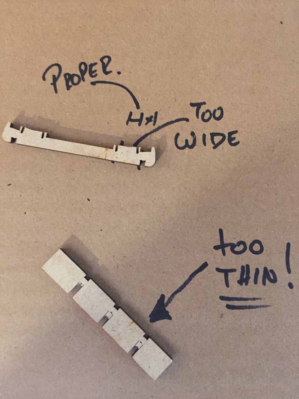 The first try i got my scale wrong (in accrodance to the mdf 3mm material.) So the joints where frutelless.