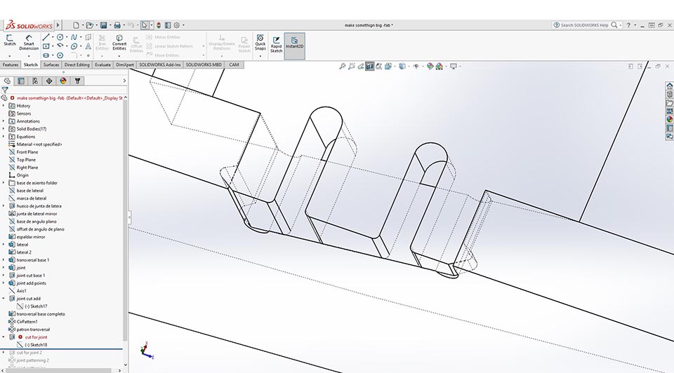 Especially making this complex jointery, in mass production you would create smart components and have parameters on the releifs for the bits to adapt to the tooling.