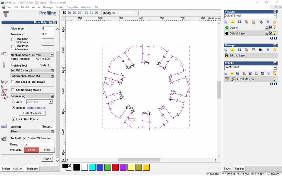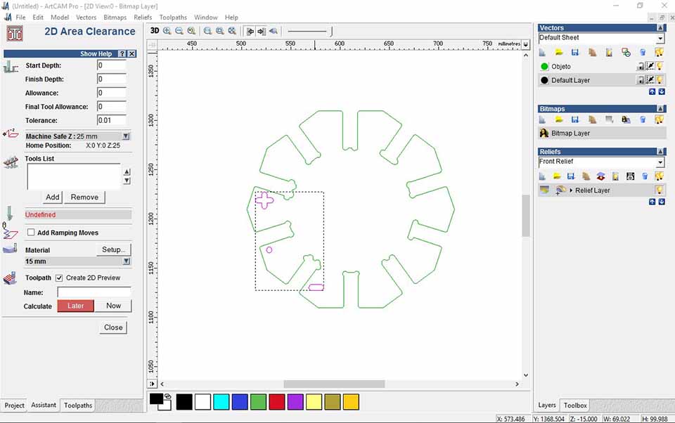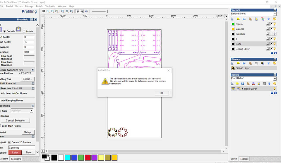 This is me trying to machine arround the part in artcam after importing the file from autodesk with corrections.