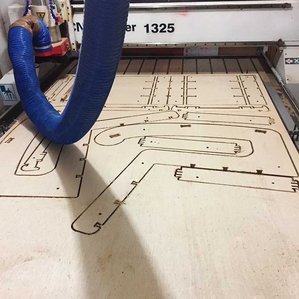 The actual machining was done in a 15mm Ply with a 2 flute, flat head, 6mm bit.