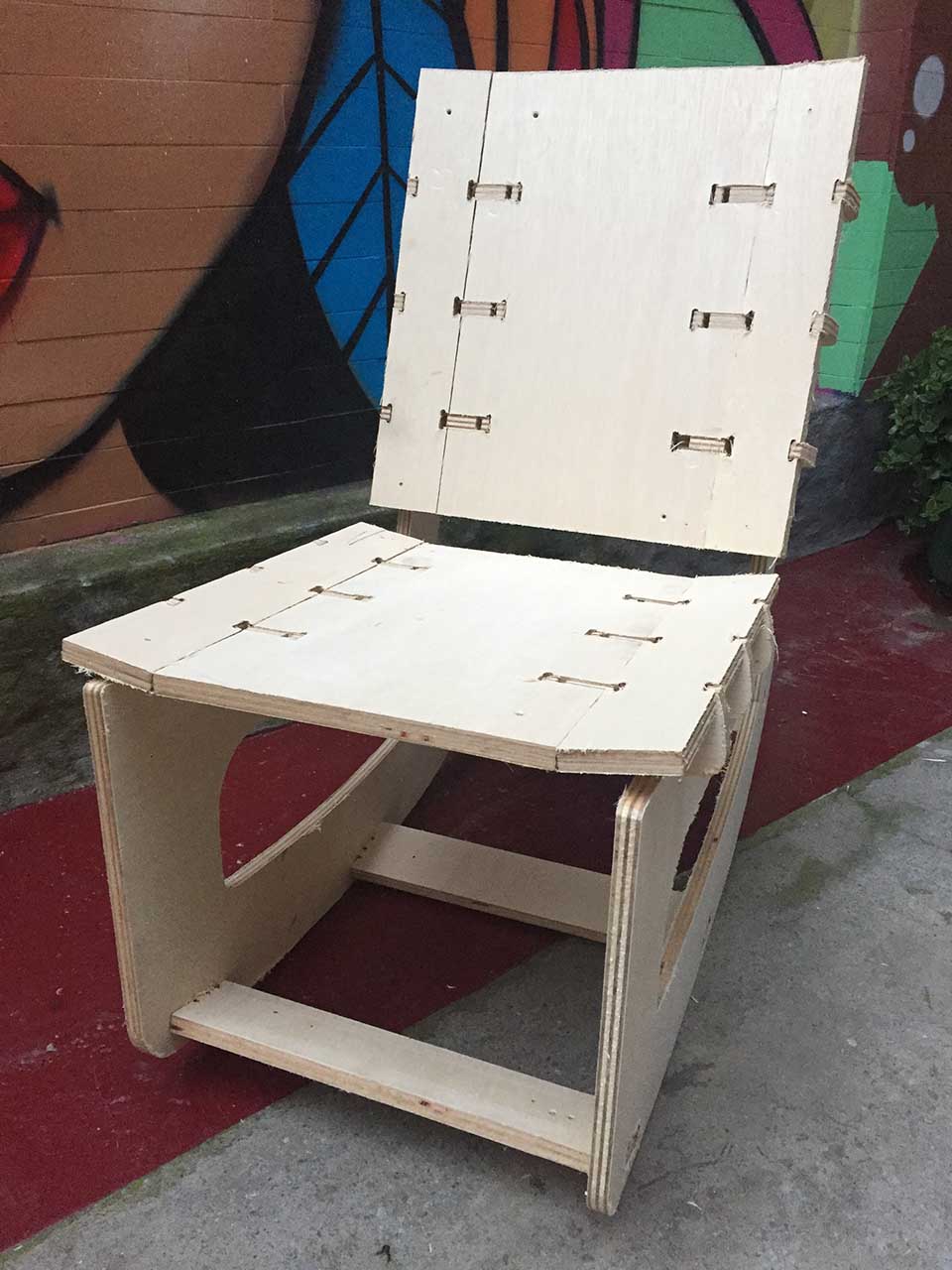 We see the final chair. Reduced from the initial dimentions to fit in 1/2 sheet of playwood.