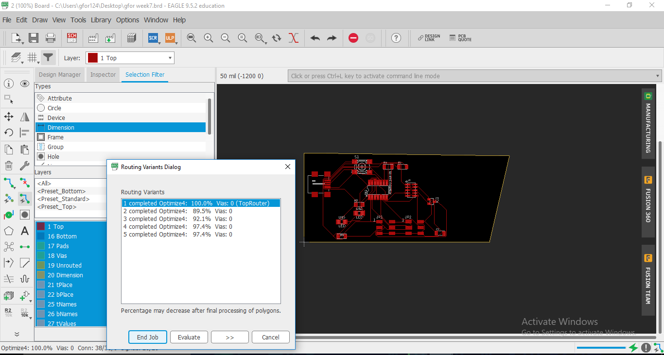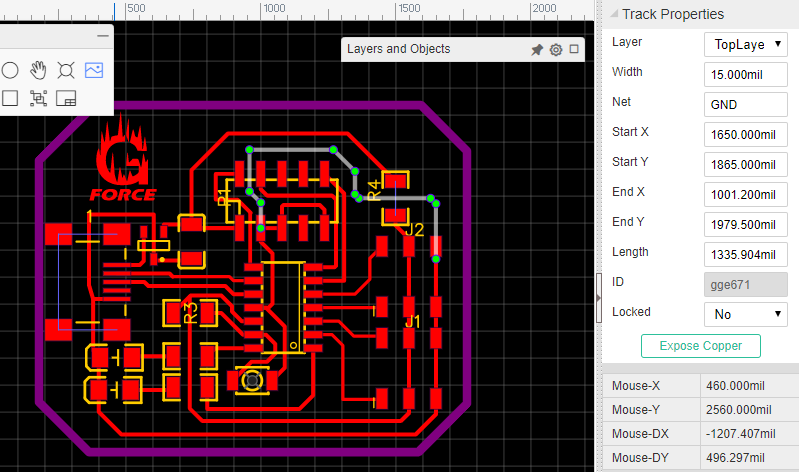 - I designed circuit again in this software after I had difficulties with EAGLE