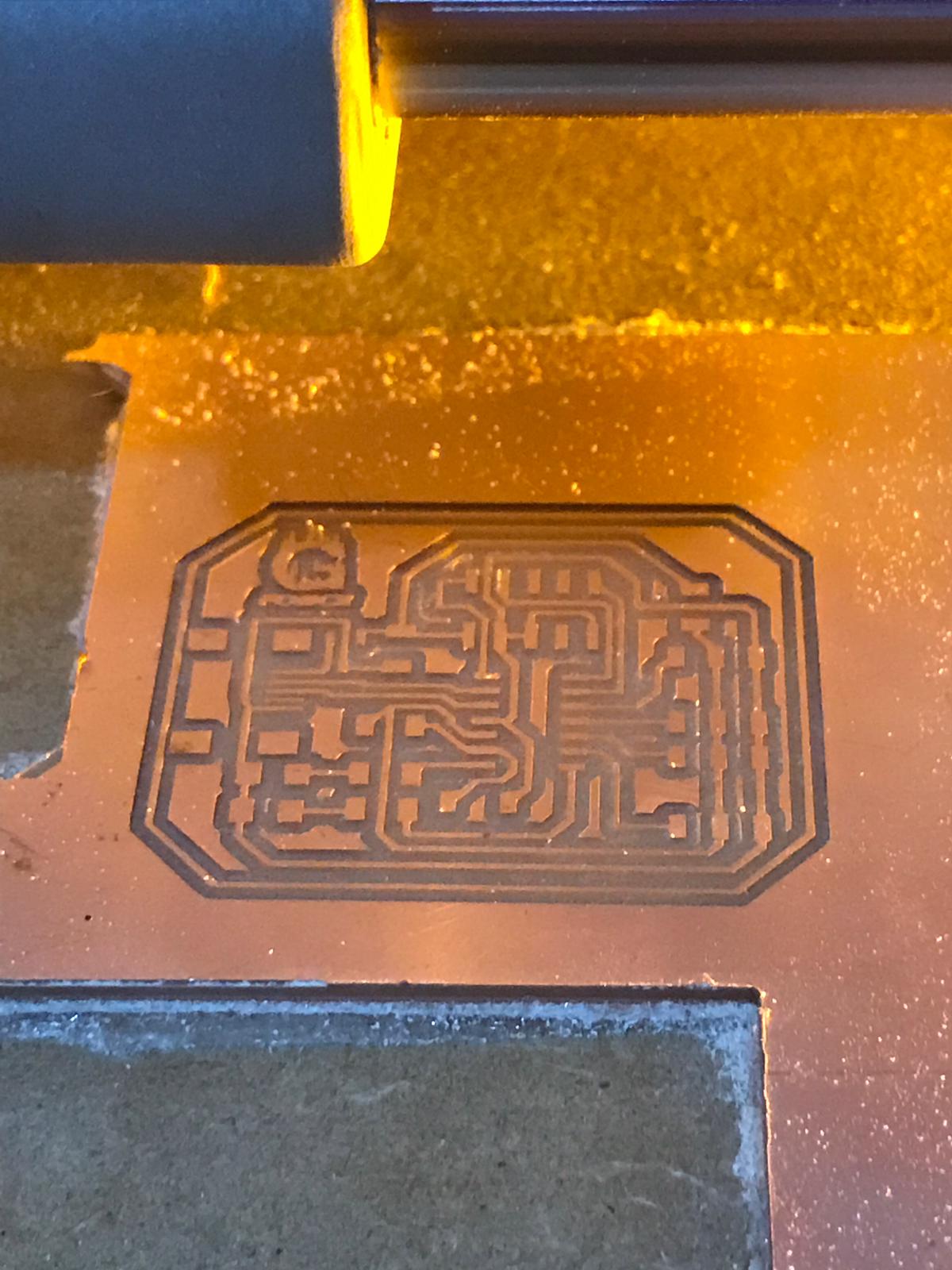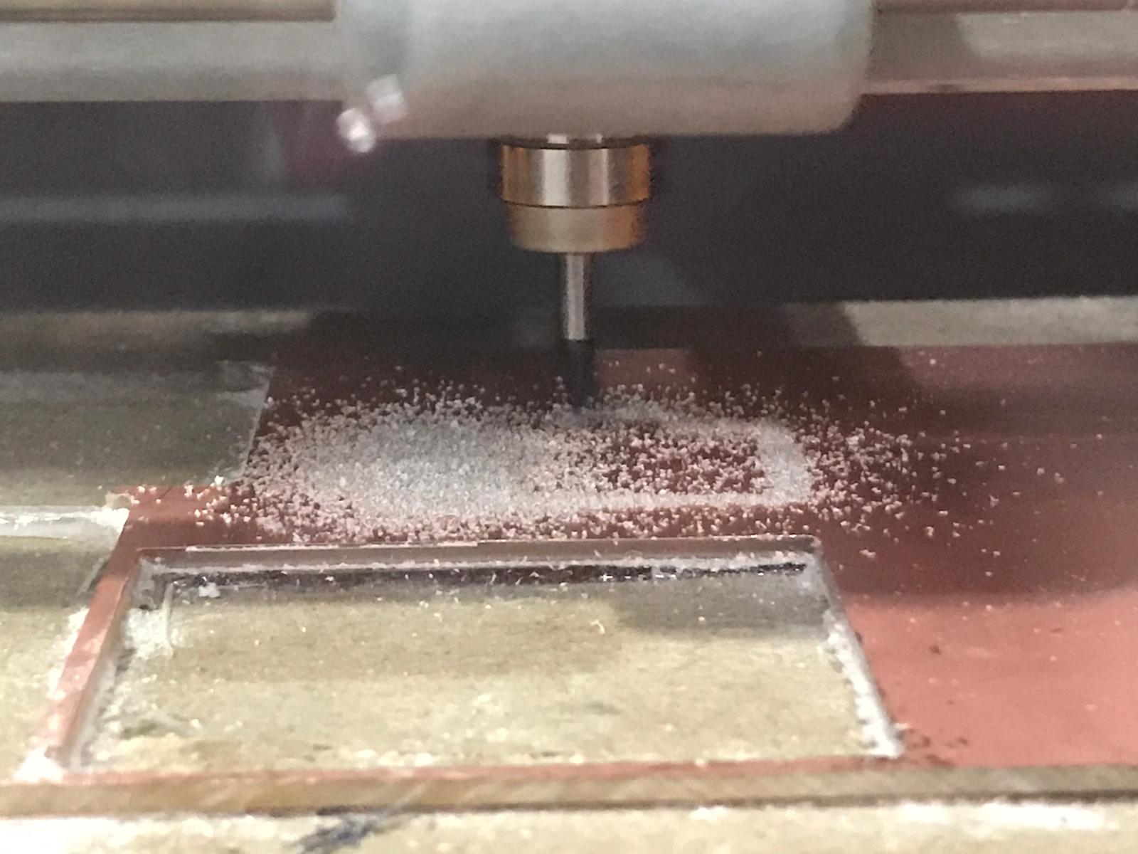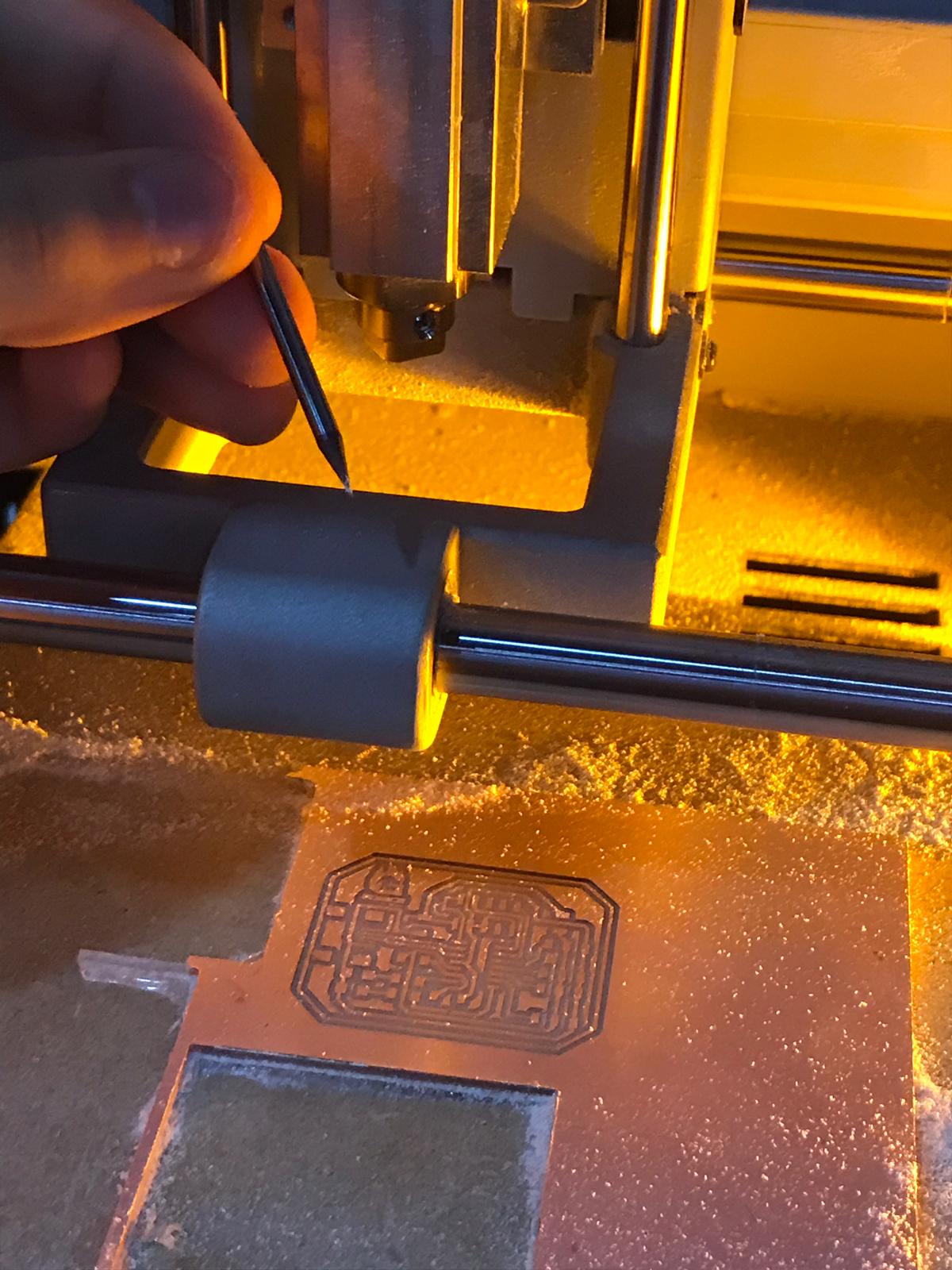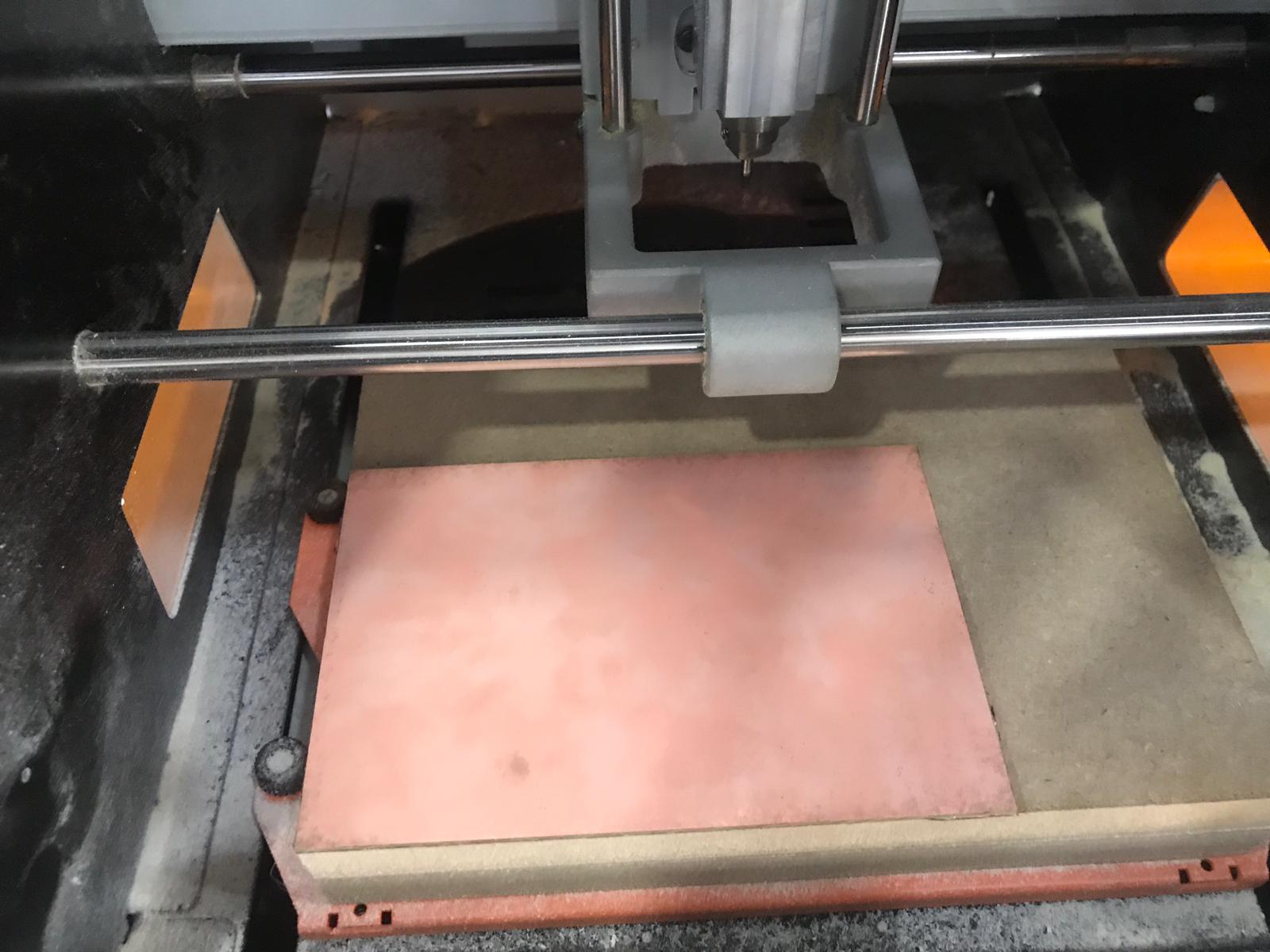 I started milling using the smaller drillbit 1/64 to mill the circut