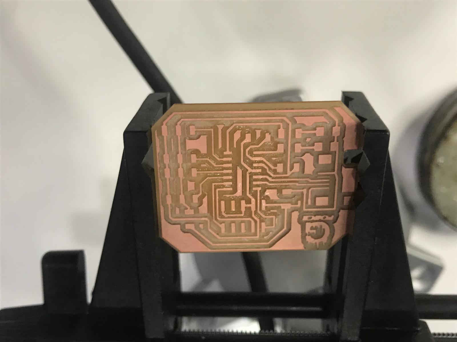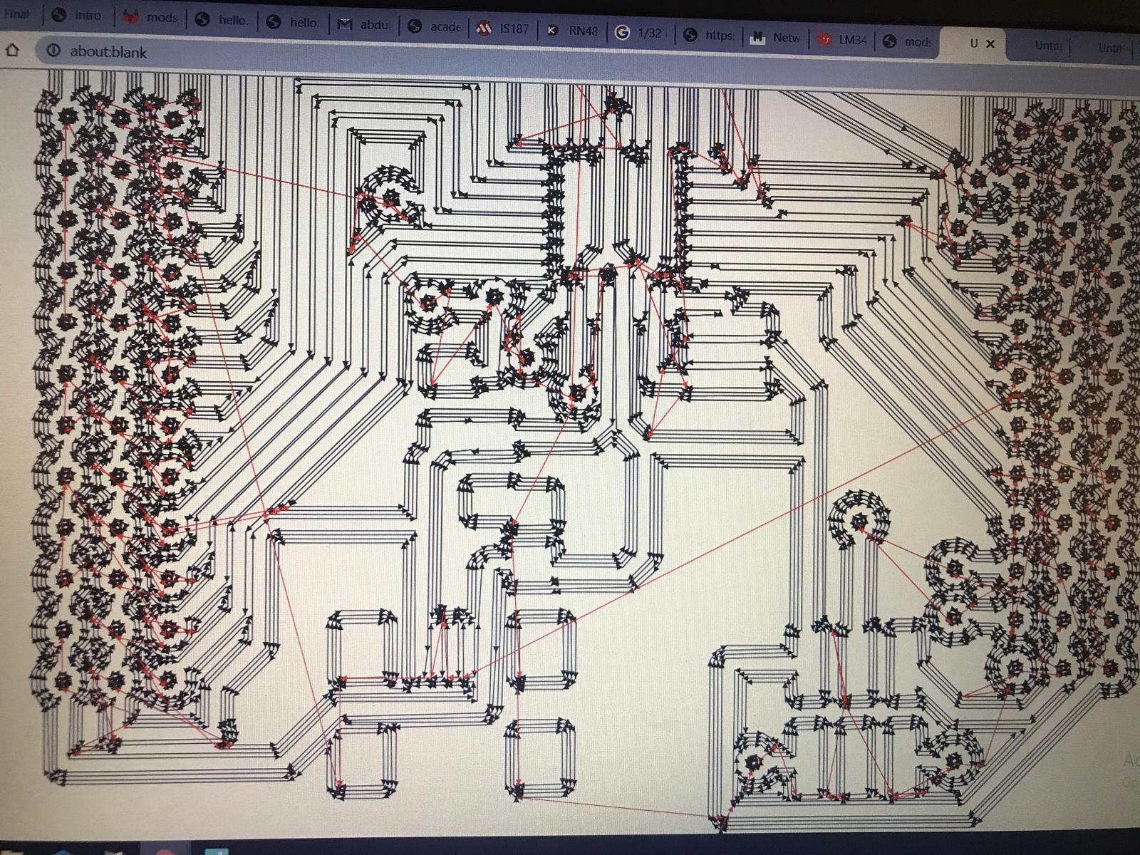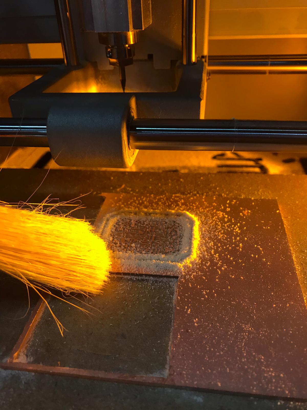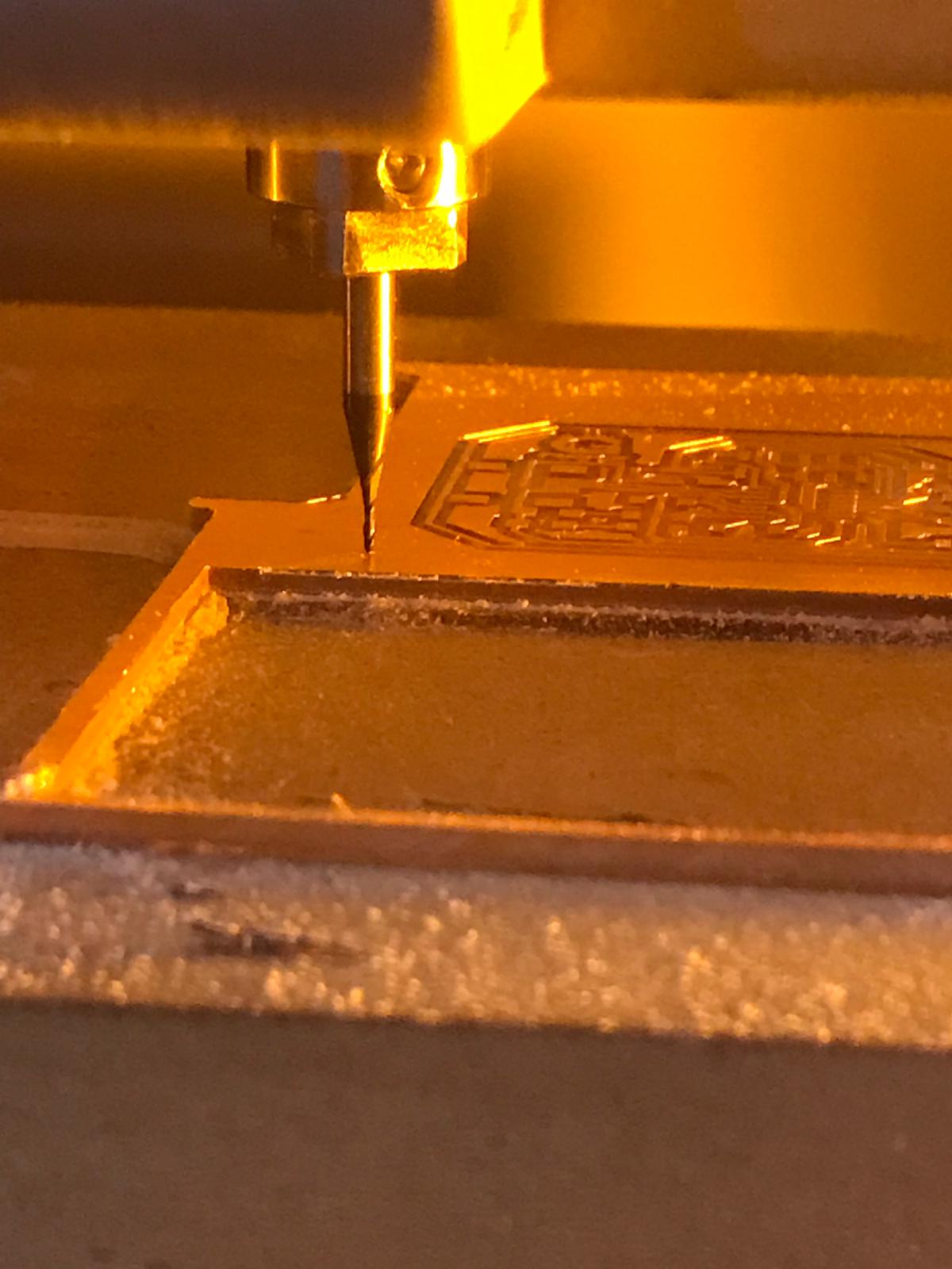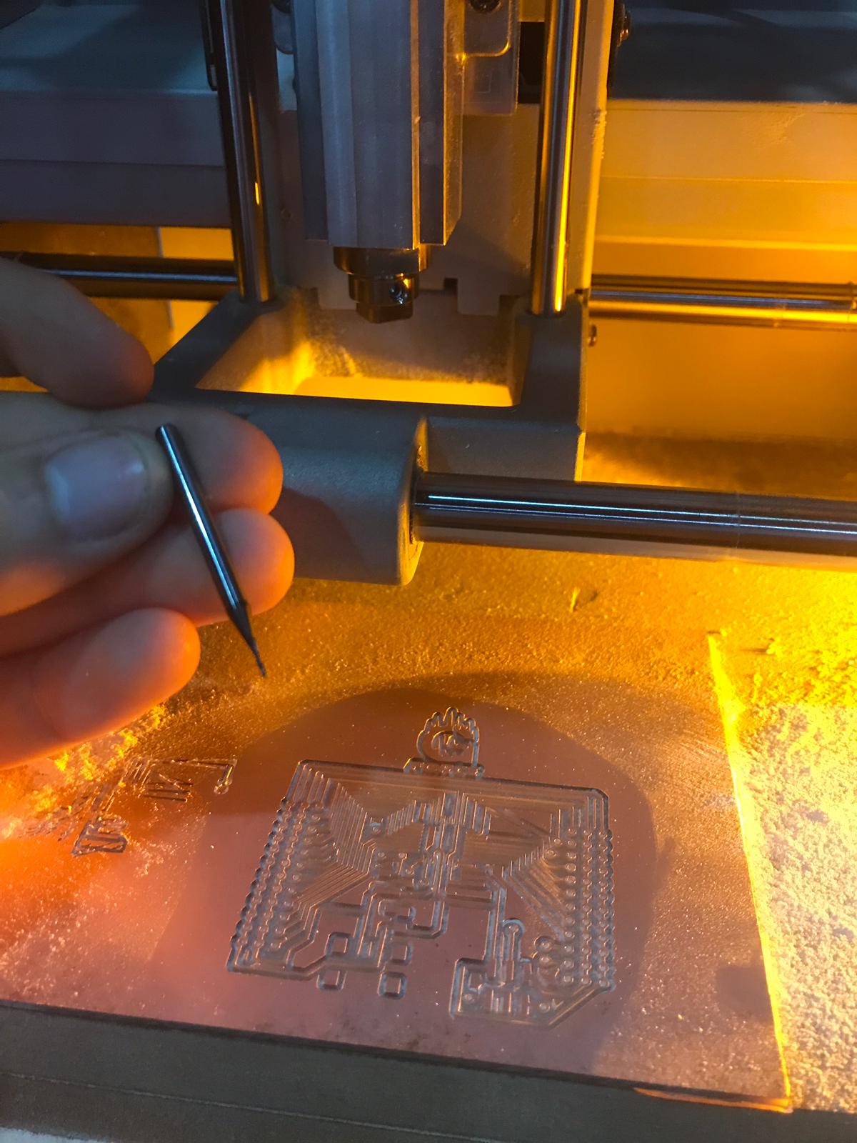 I started milling using the smaller drillbit 1/64 to mill the circut