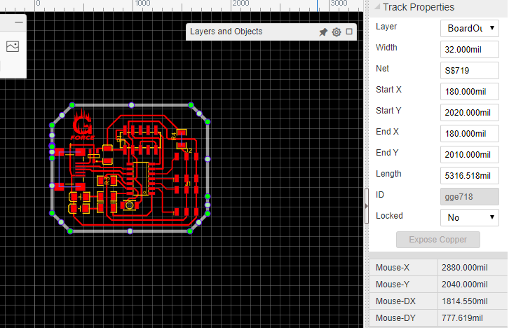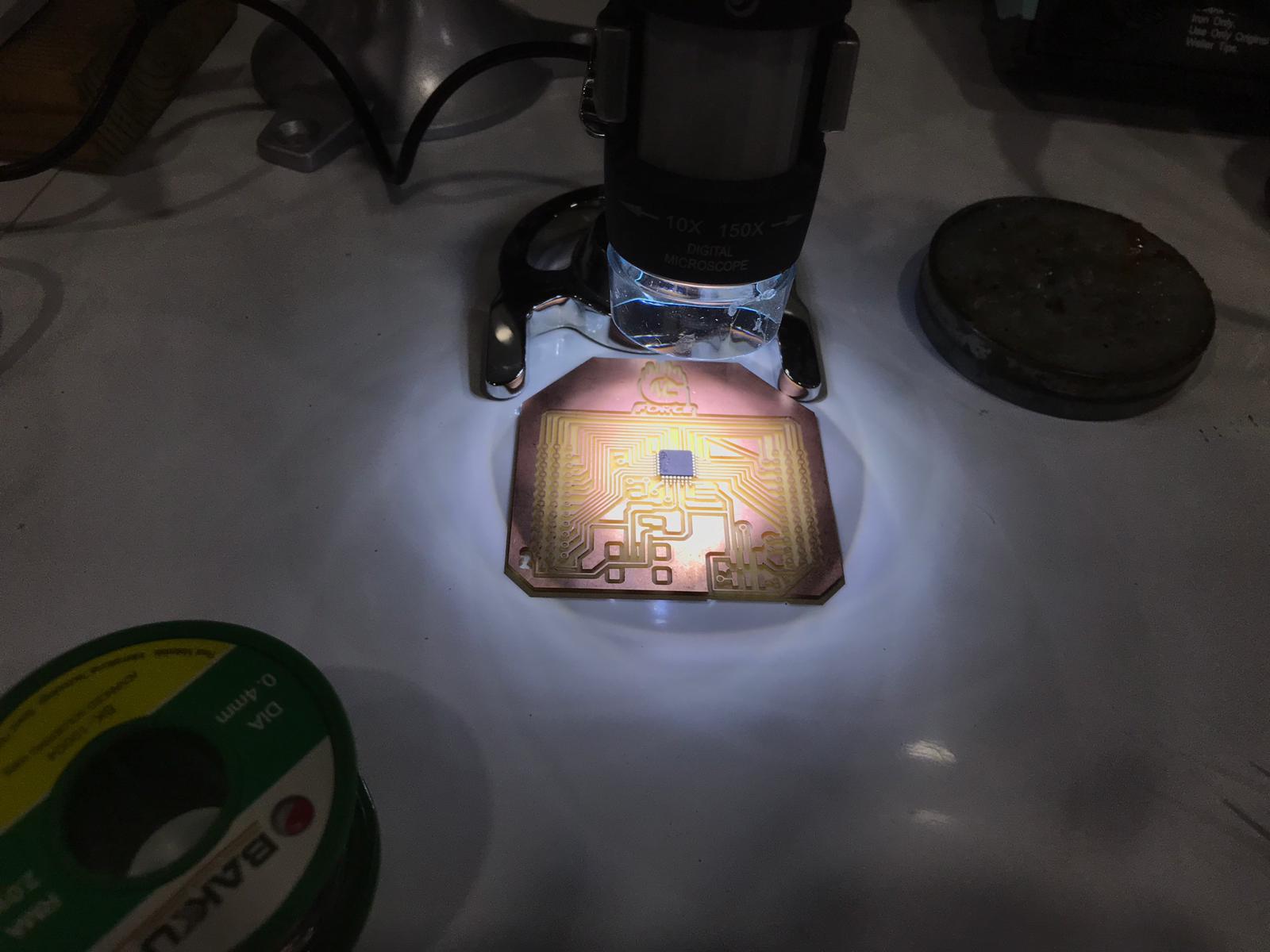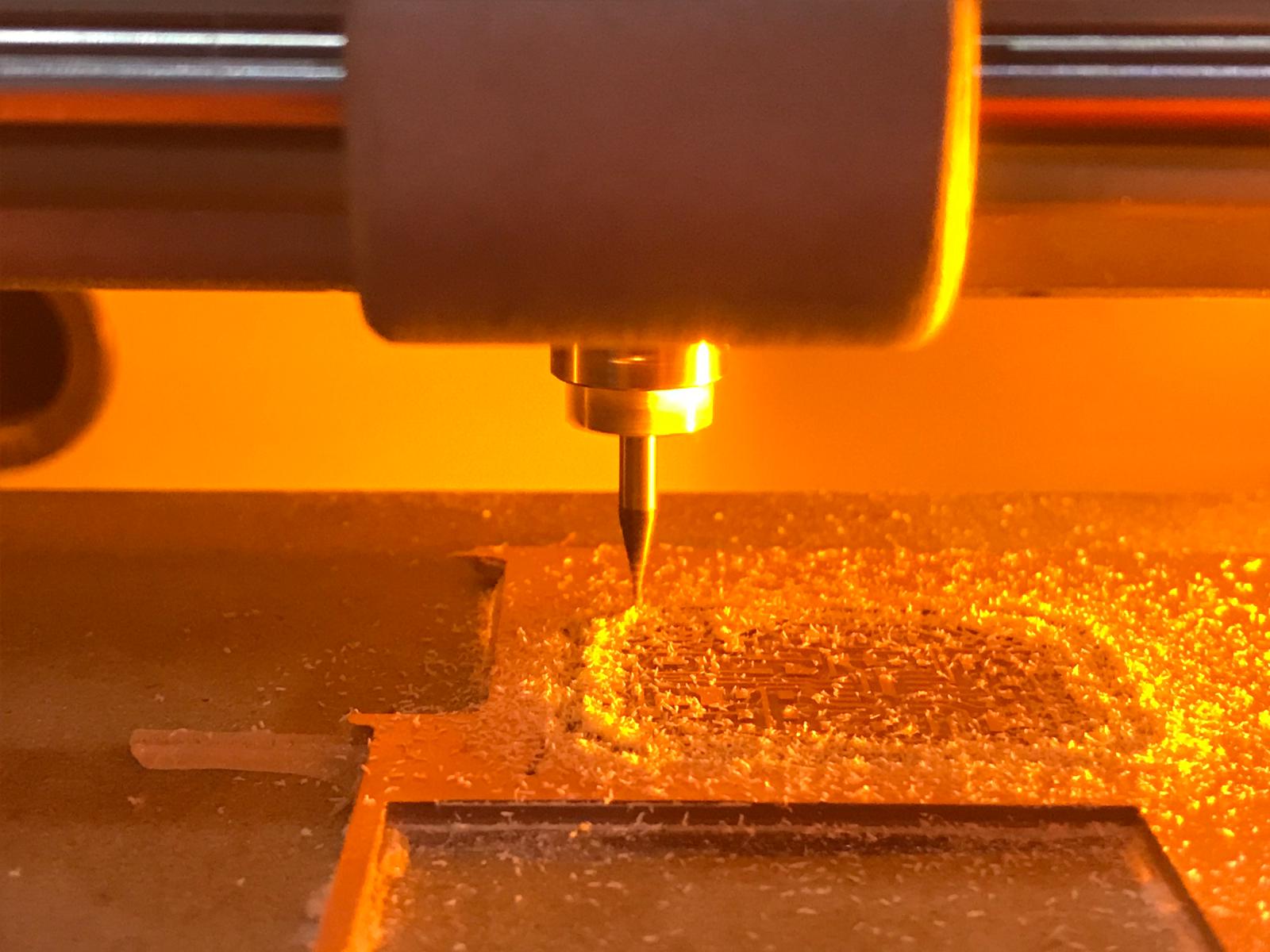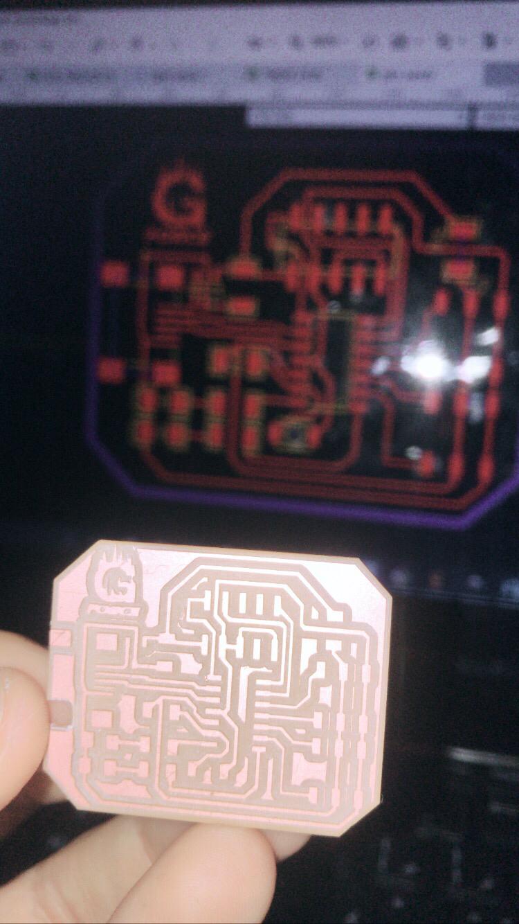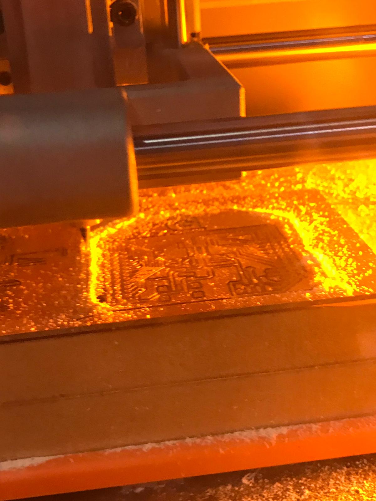 I started milling using the smaller drillbit 1/64 to mill the circut