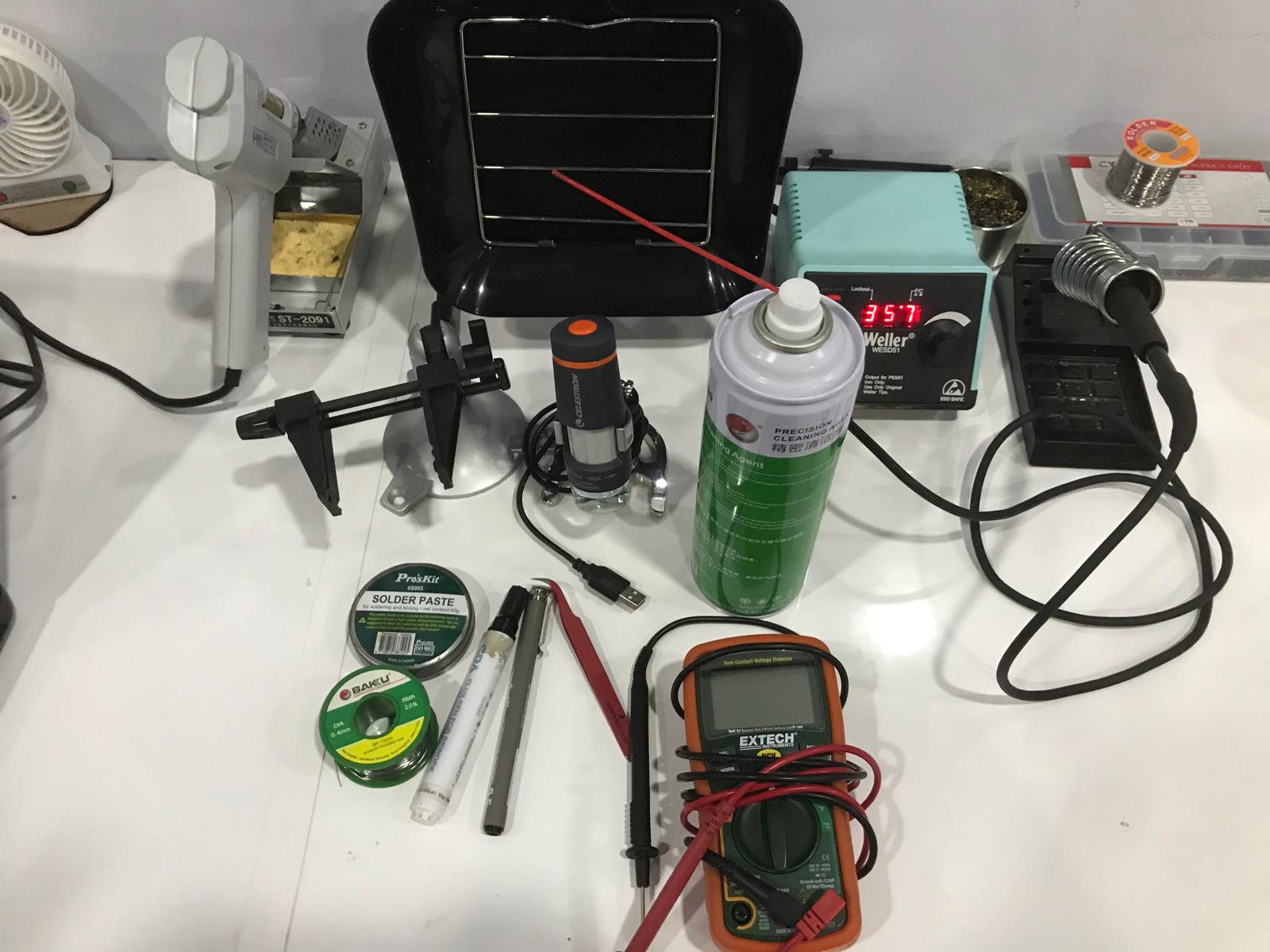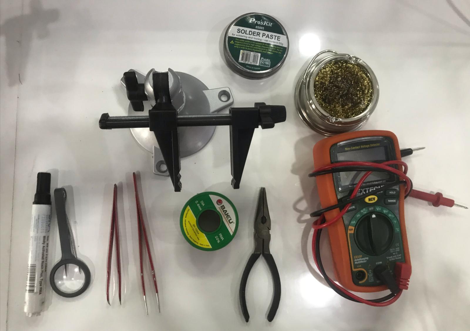 So I took out all tools I need such as multimeter plires holder soldeing iron and more