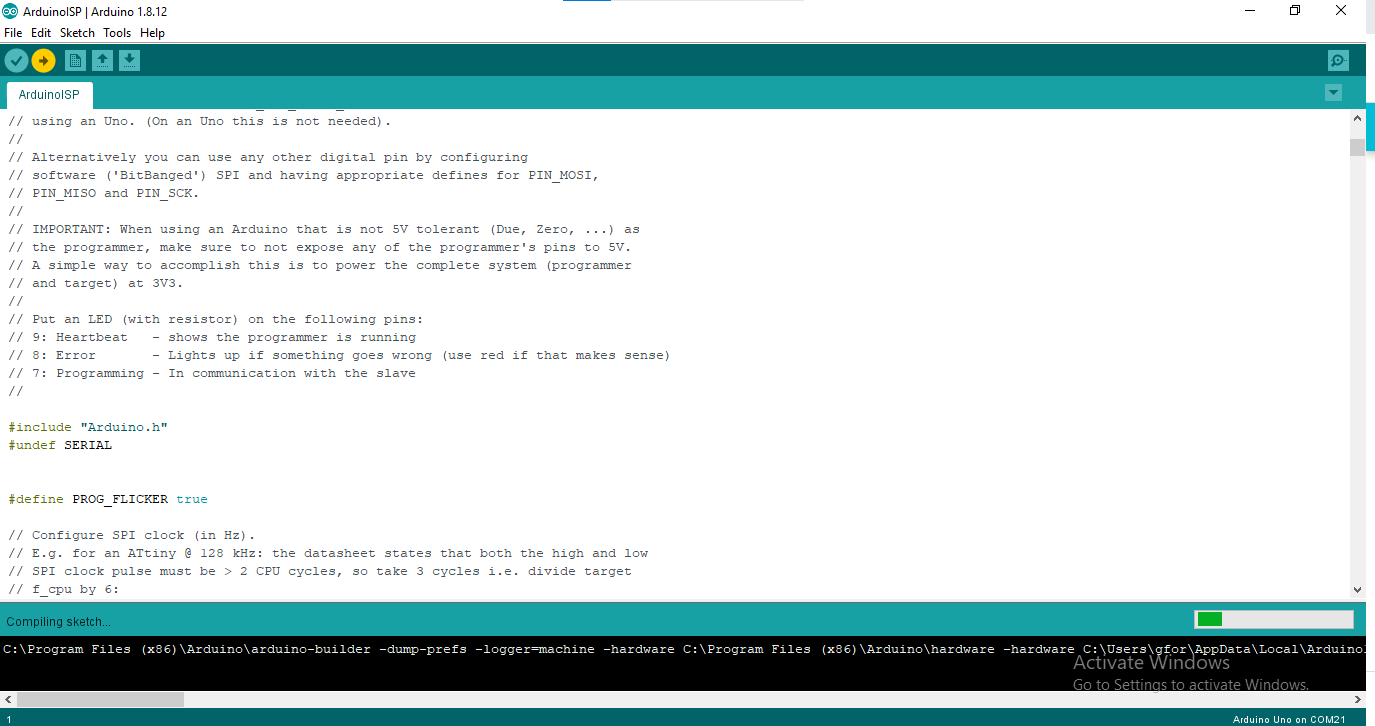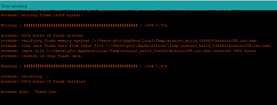 4 I clicked on upload to upload the code to me “Arduino as a programmer”