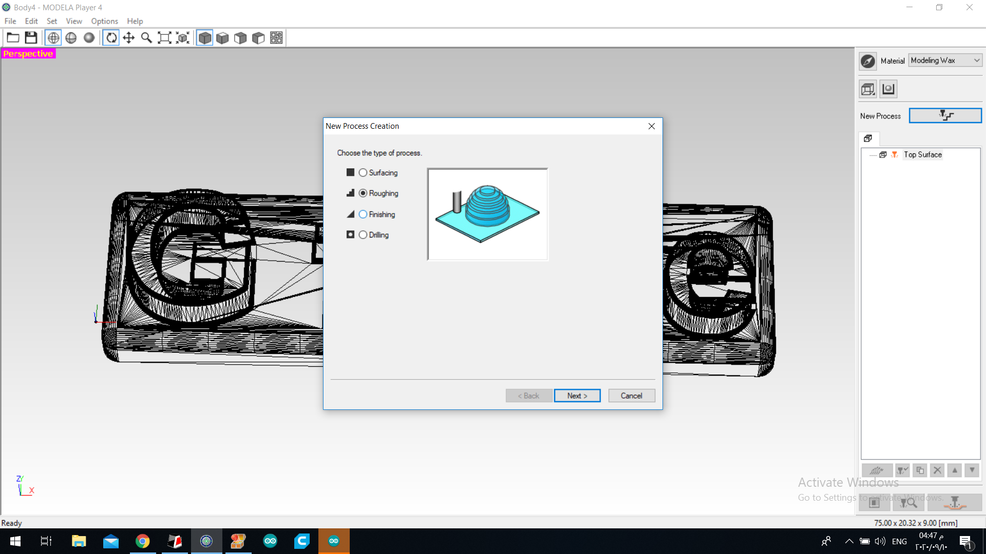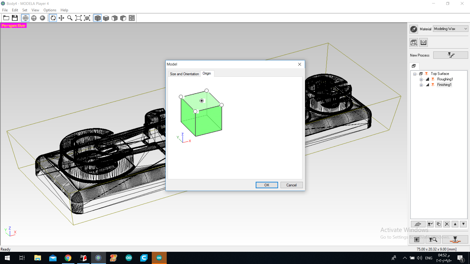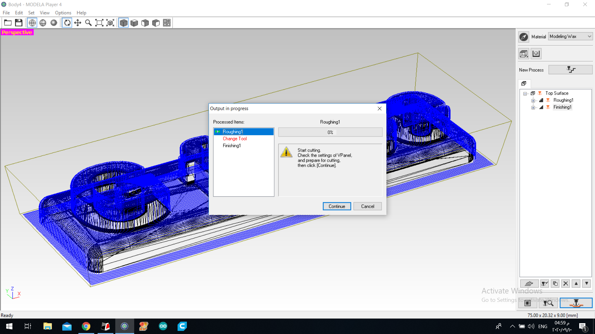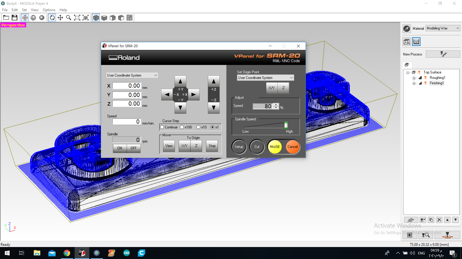 17.the we started milling … of course before that we sticked the wax block in the machine using double sided tape