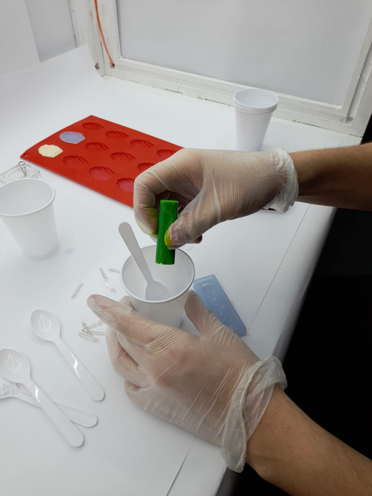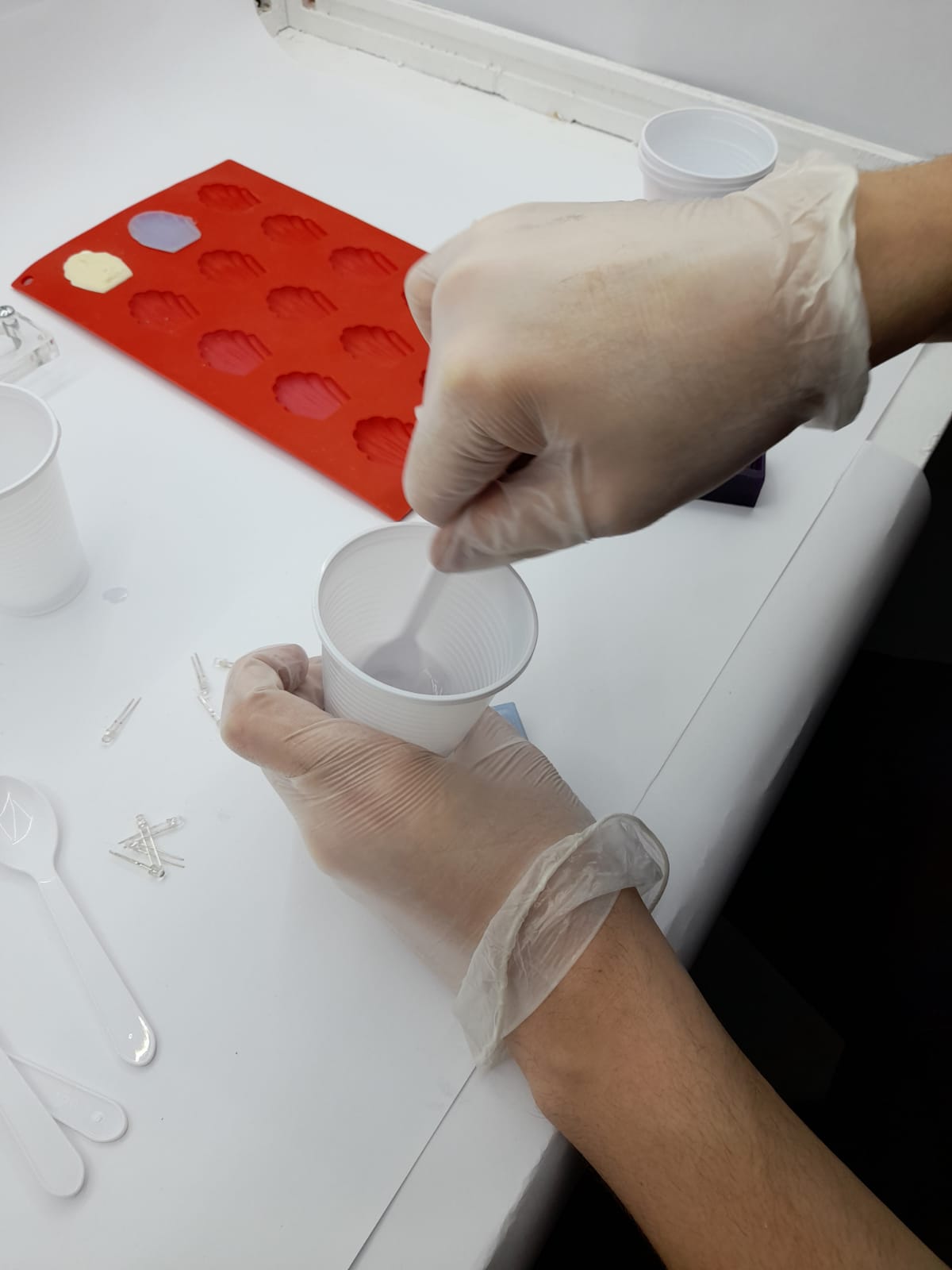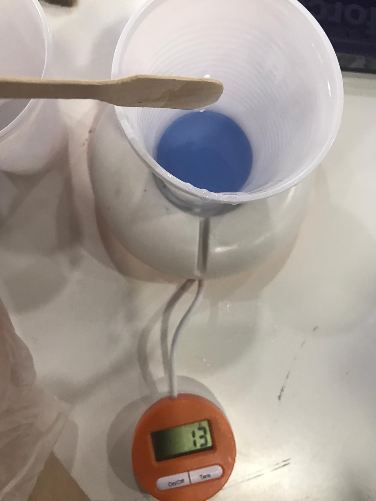 36. after that I poured mixture to my positive wax mold and knocked the walls so any bubble can go out easily