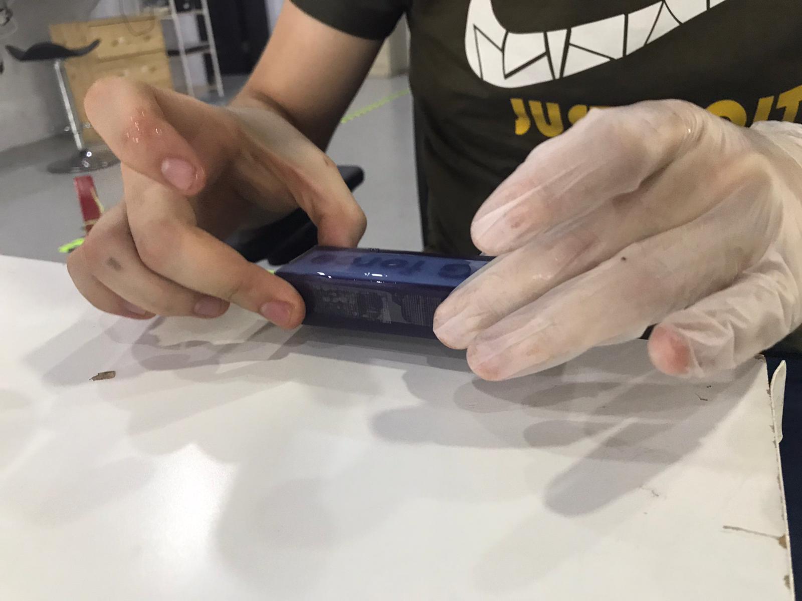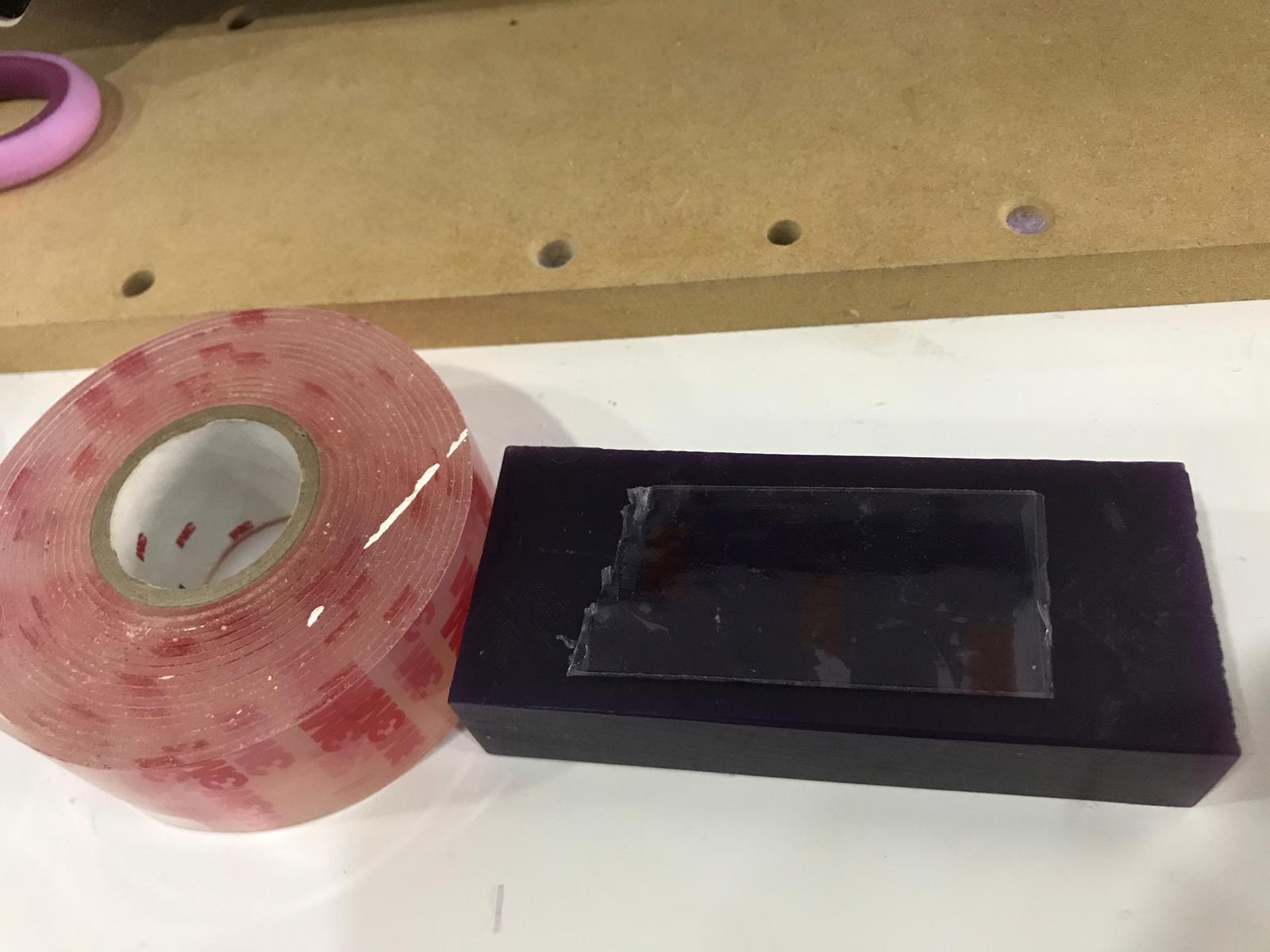 19.we sticked the wax block in the machine using double sided tape