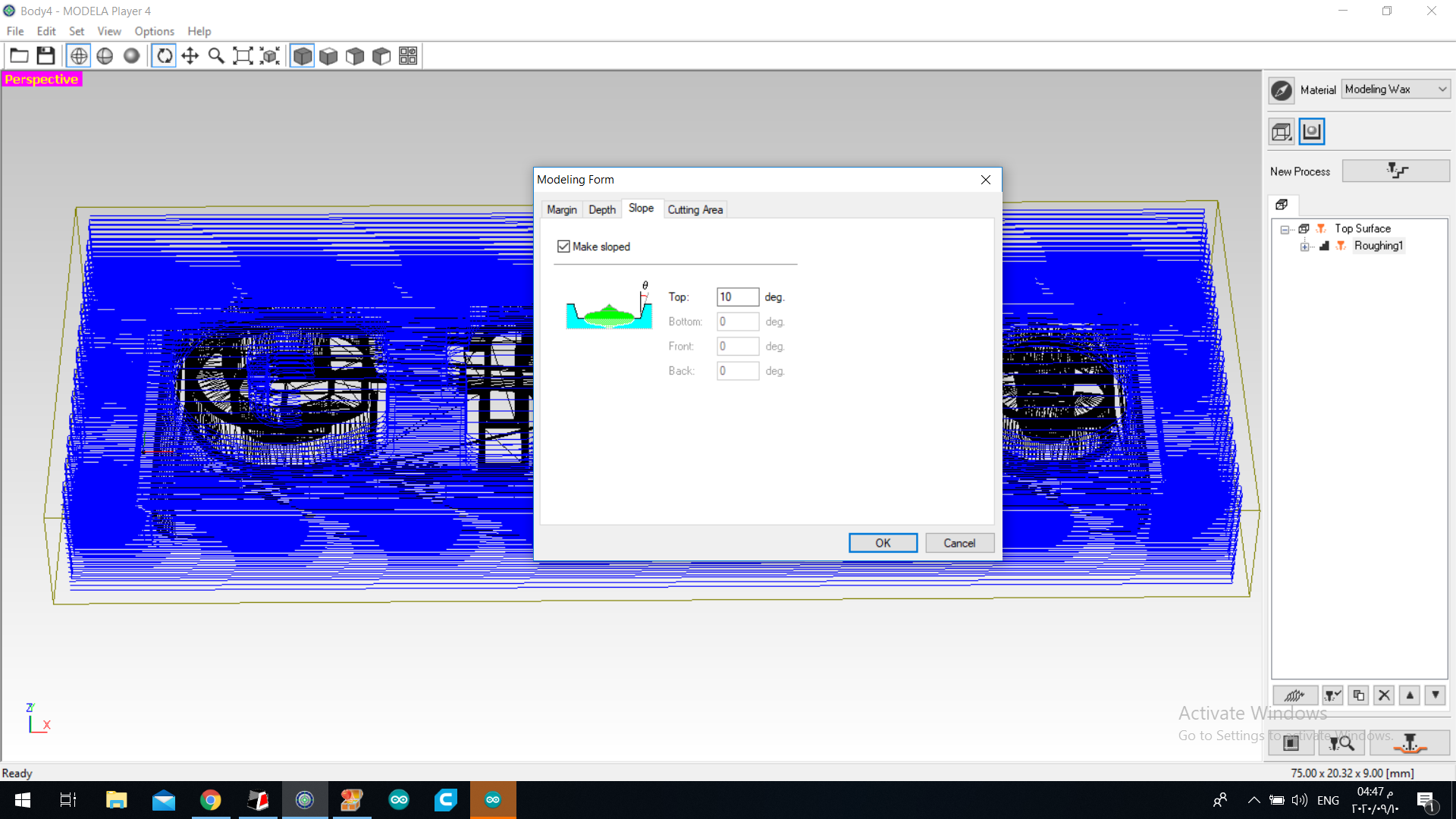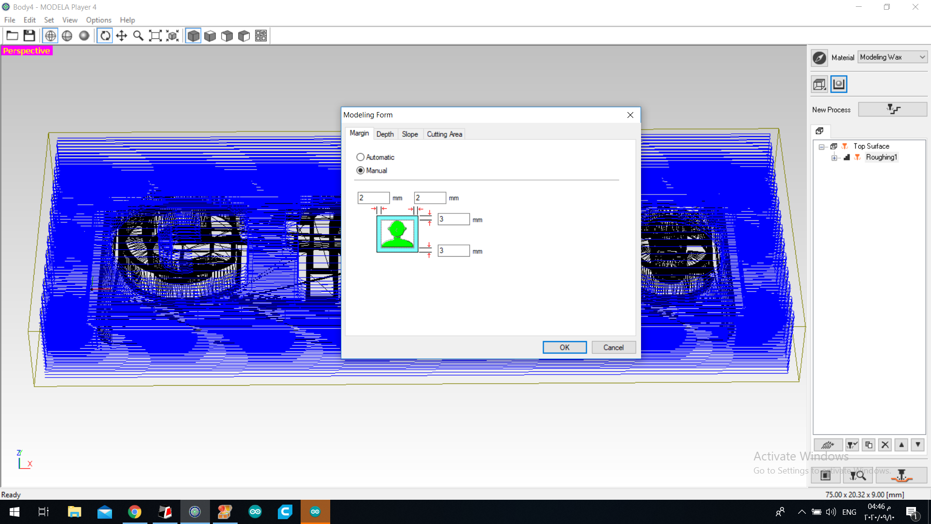 7.i set the toolpath and added 2mm margen in all the sides for safety