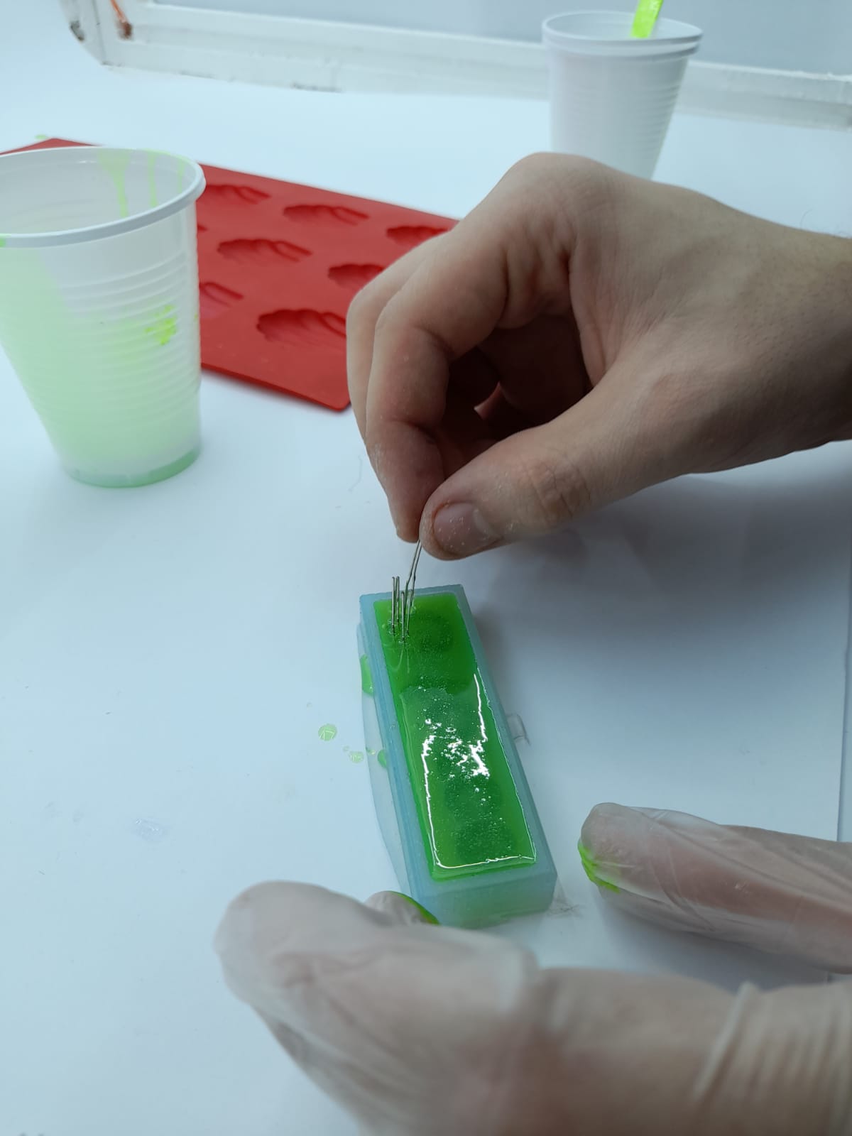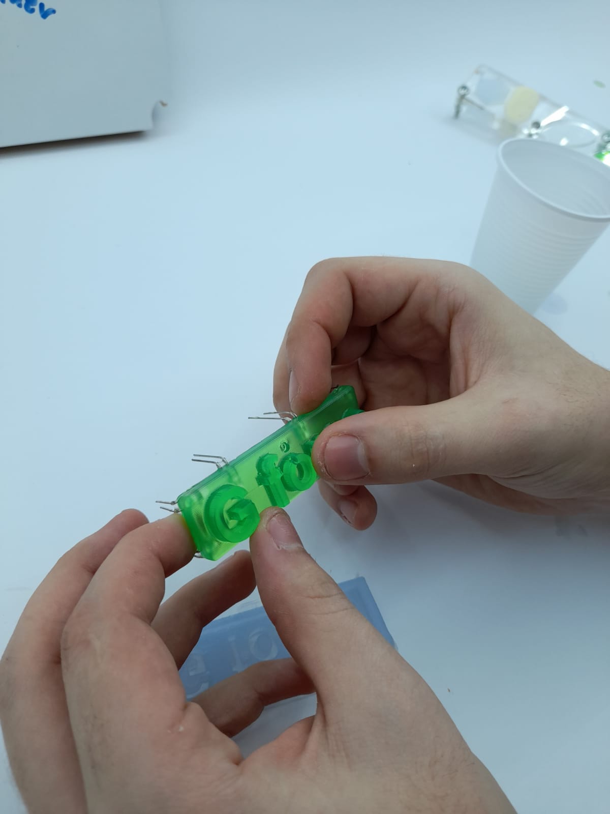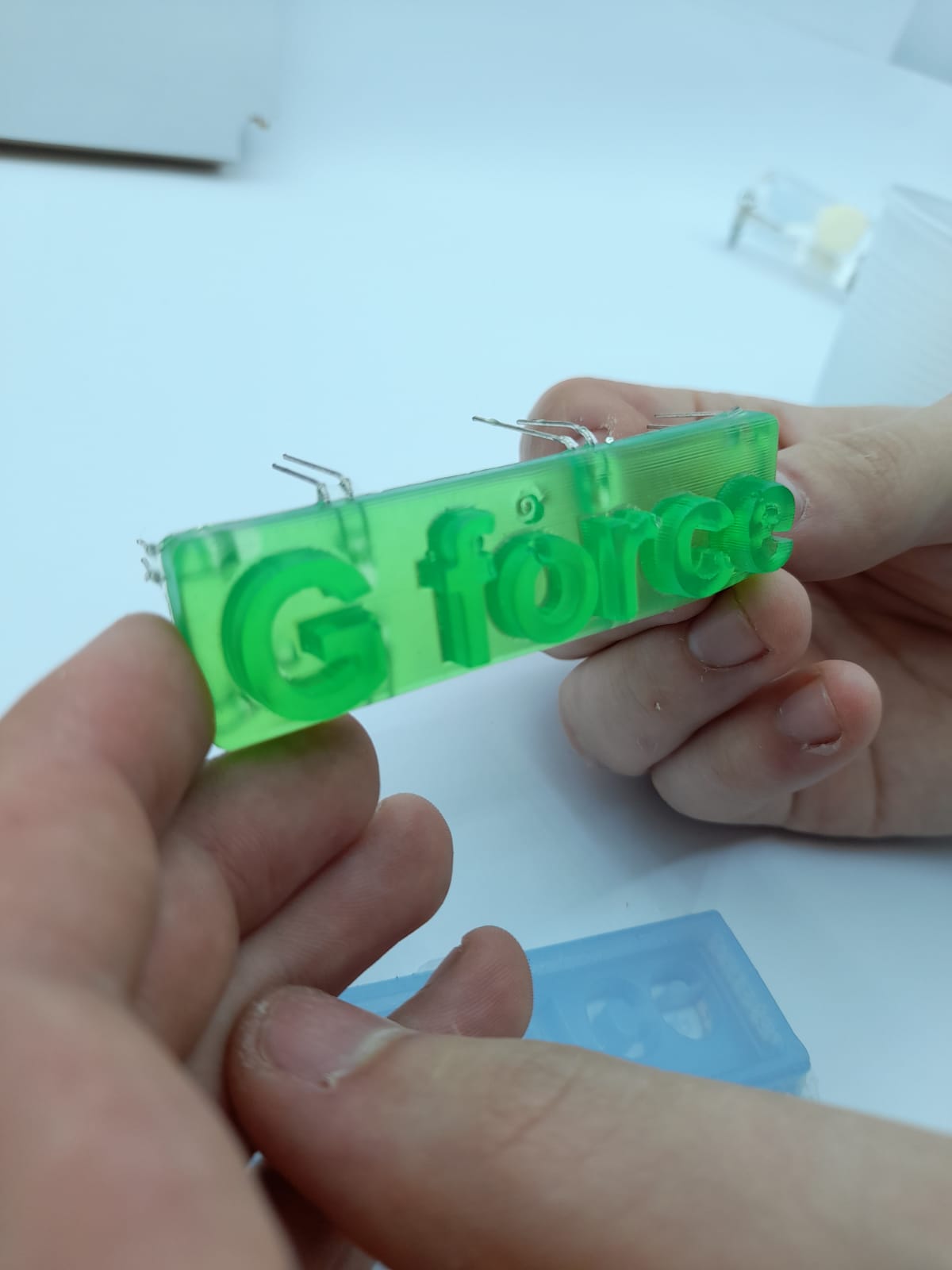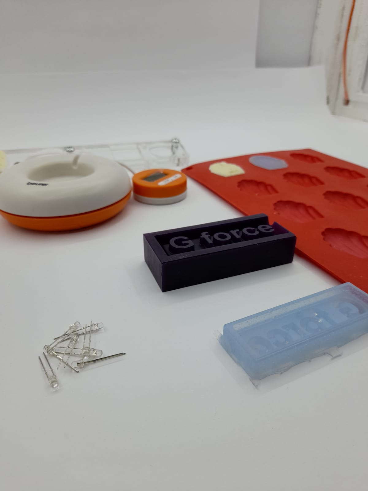 46.I poured the epoxy in the negative mold and i also had an idea to put some LEDs