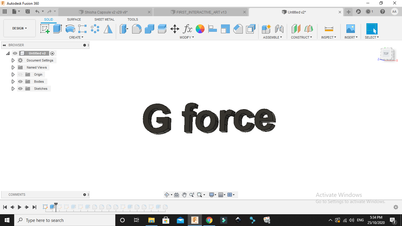 1.I started with simple text sketch in fusion360