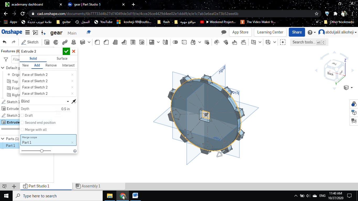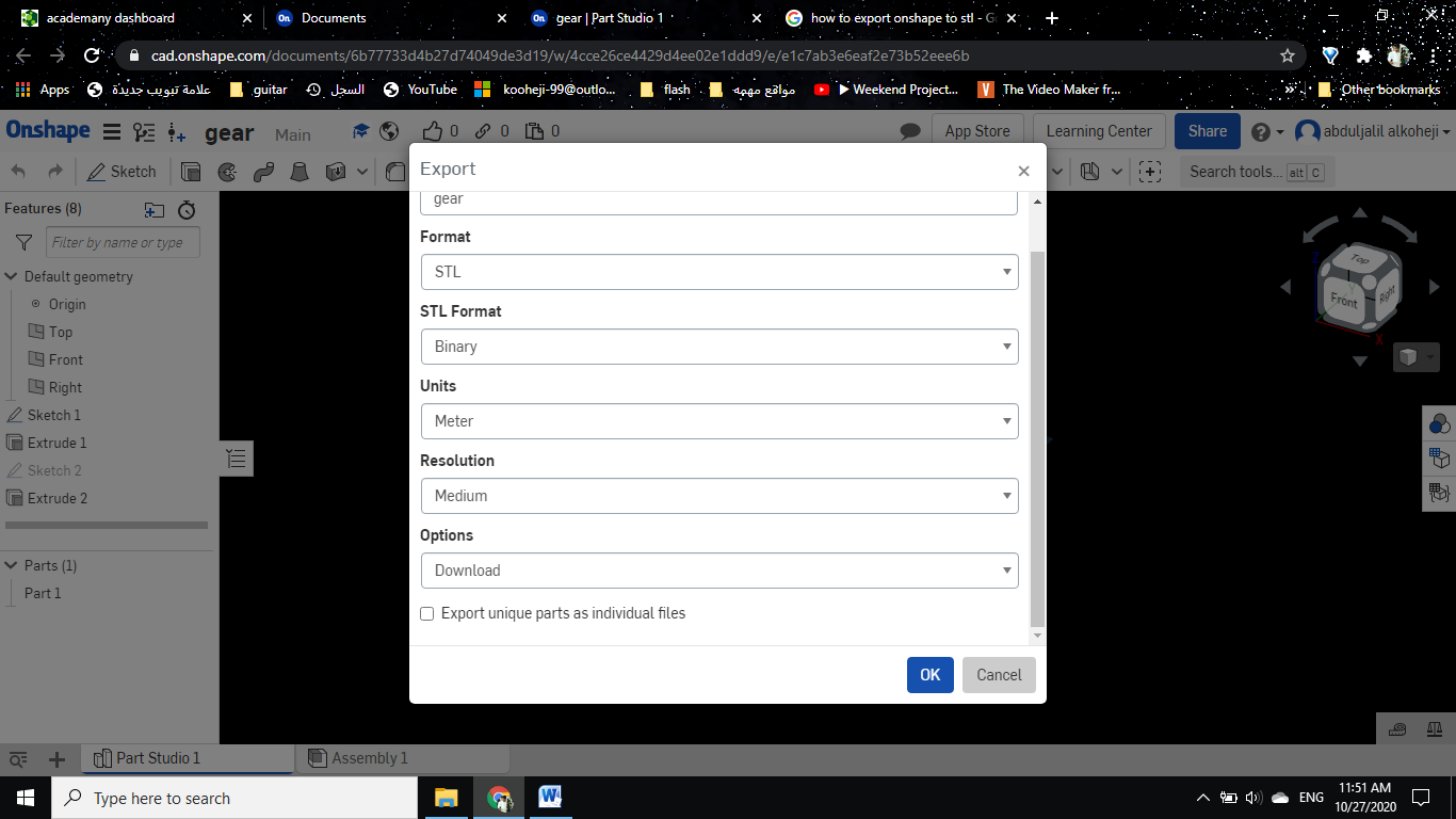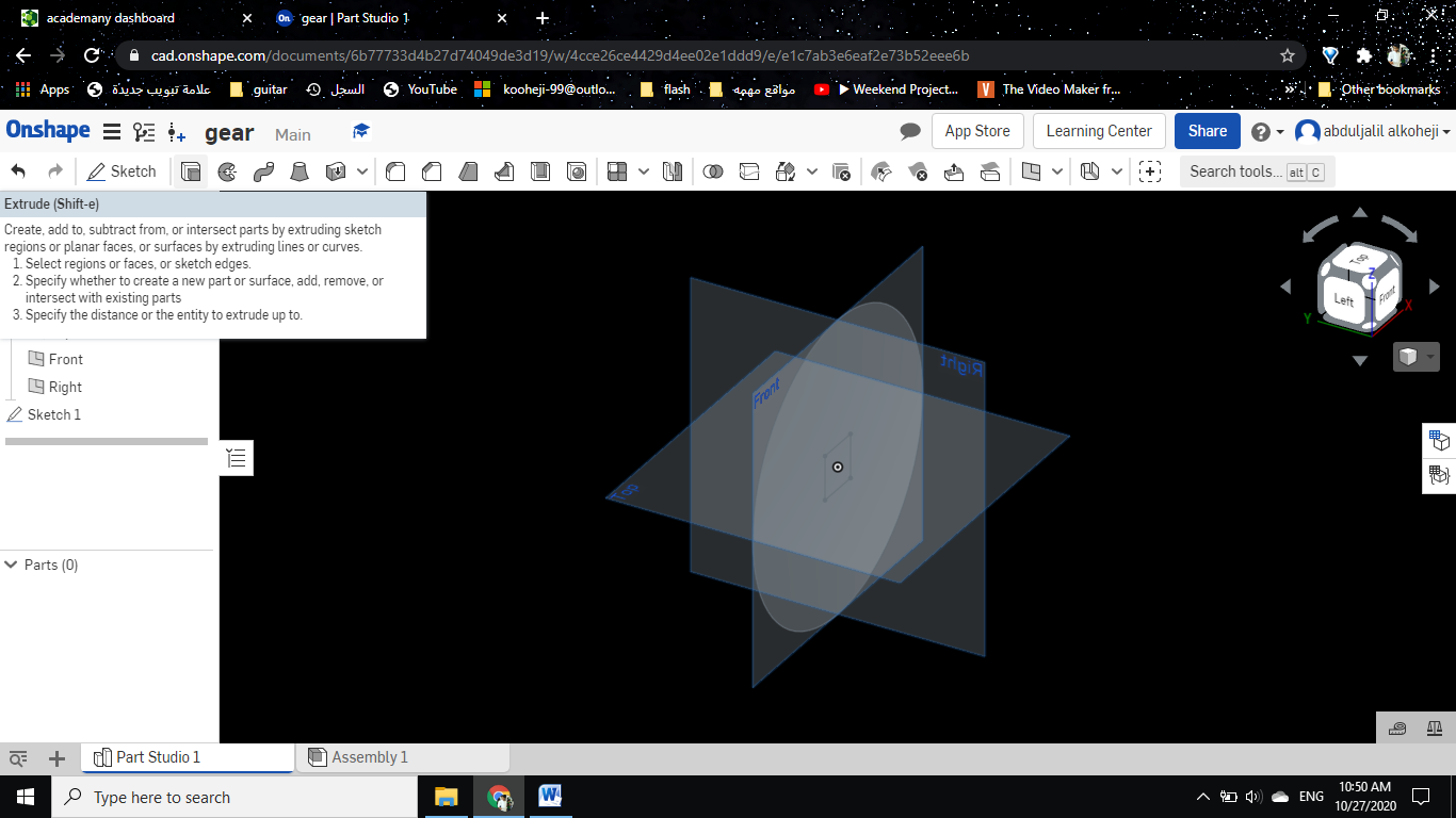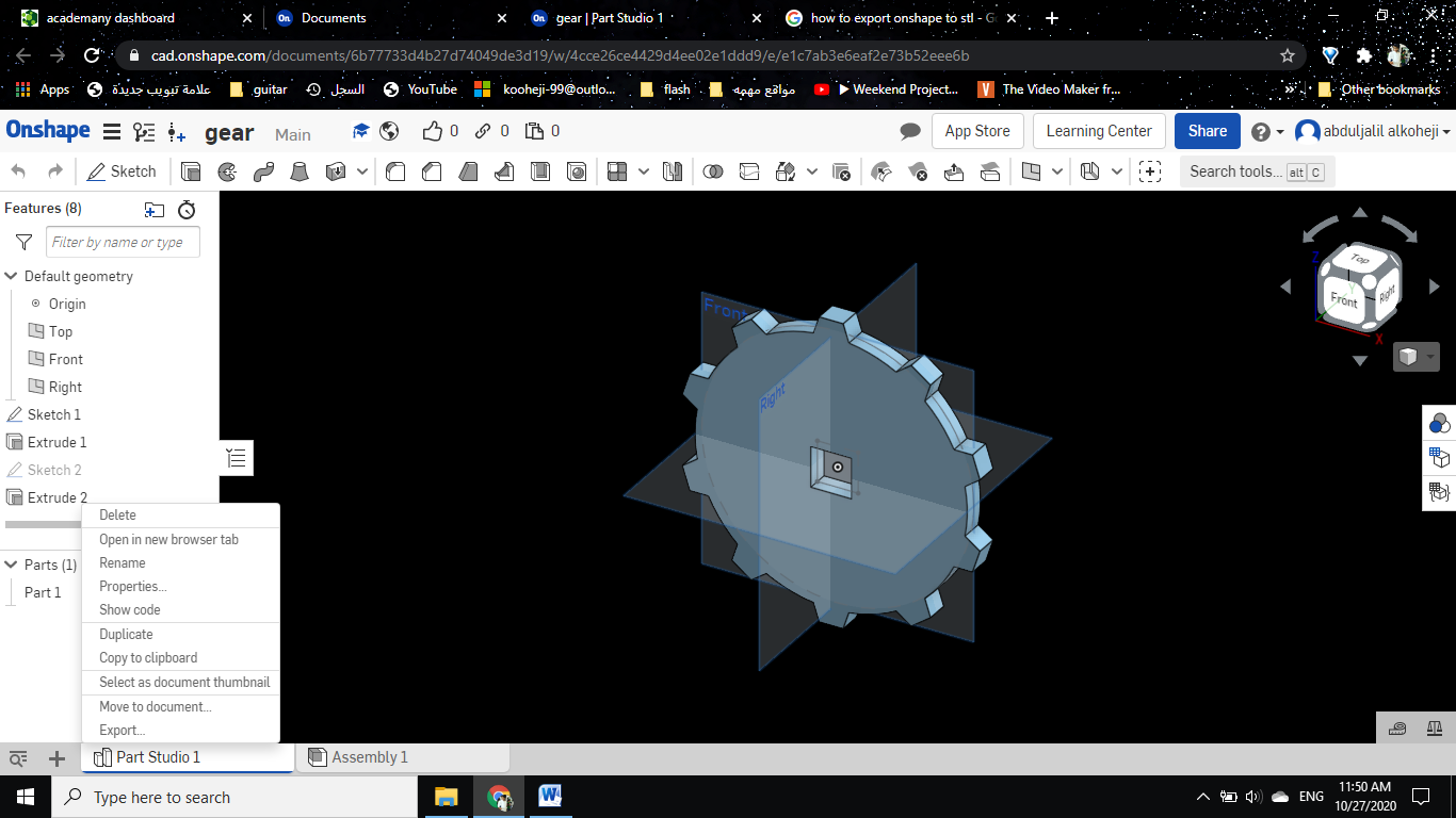 then I male extrude so it become 3d part you can change the thinness of the part by changing the extrude