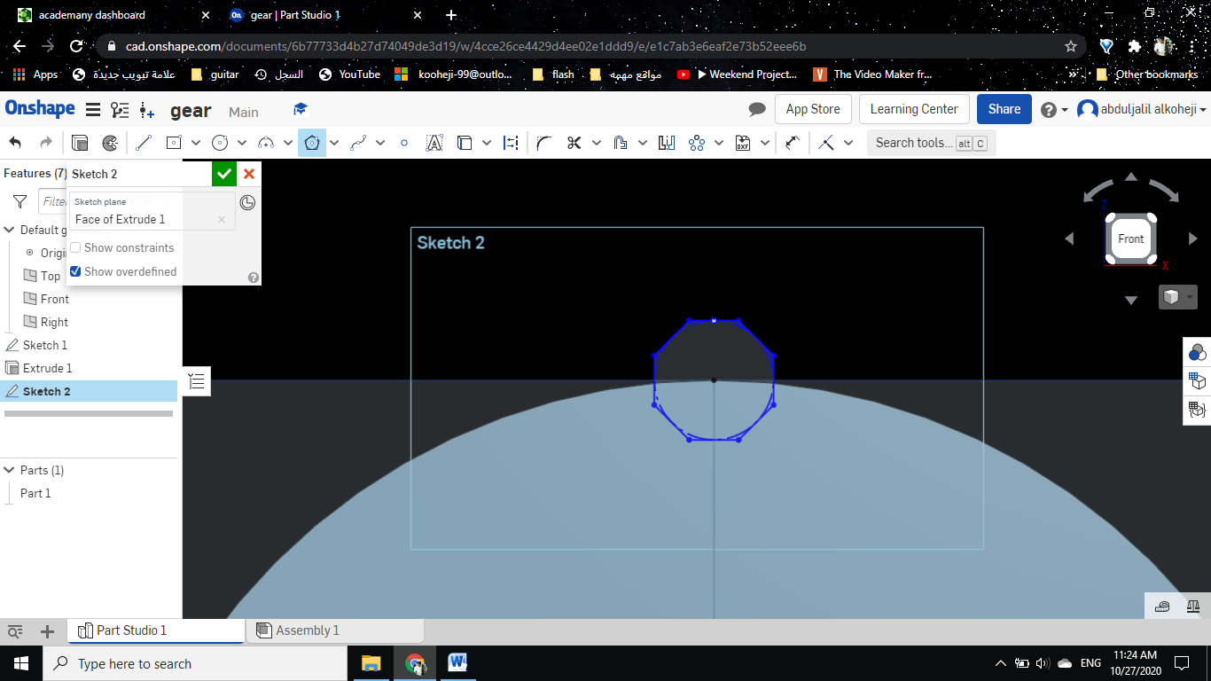 then I start the second sketch on the circle, I make the octagonal on the top of the cercal.