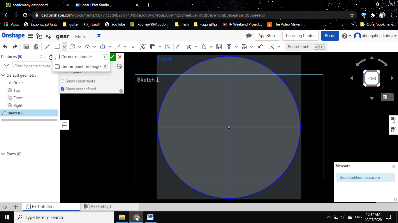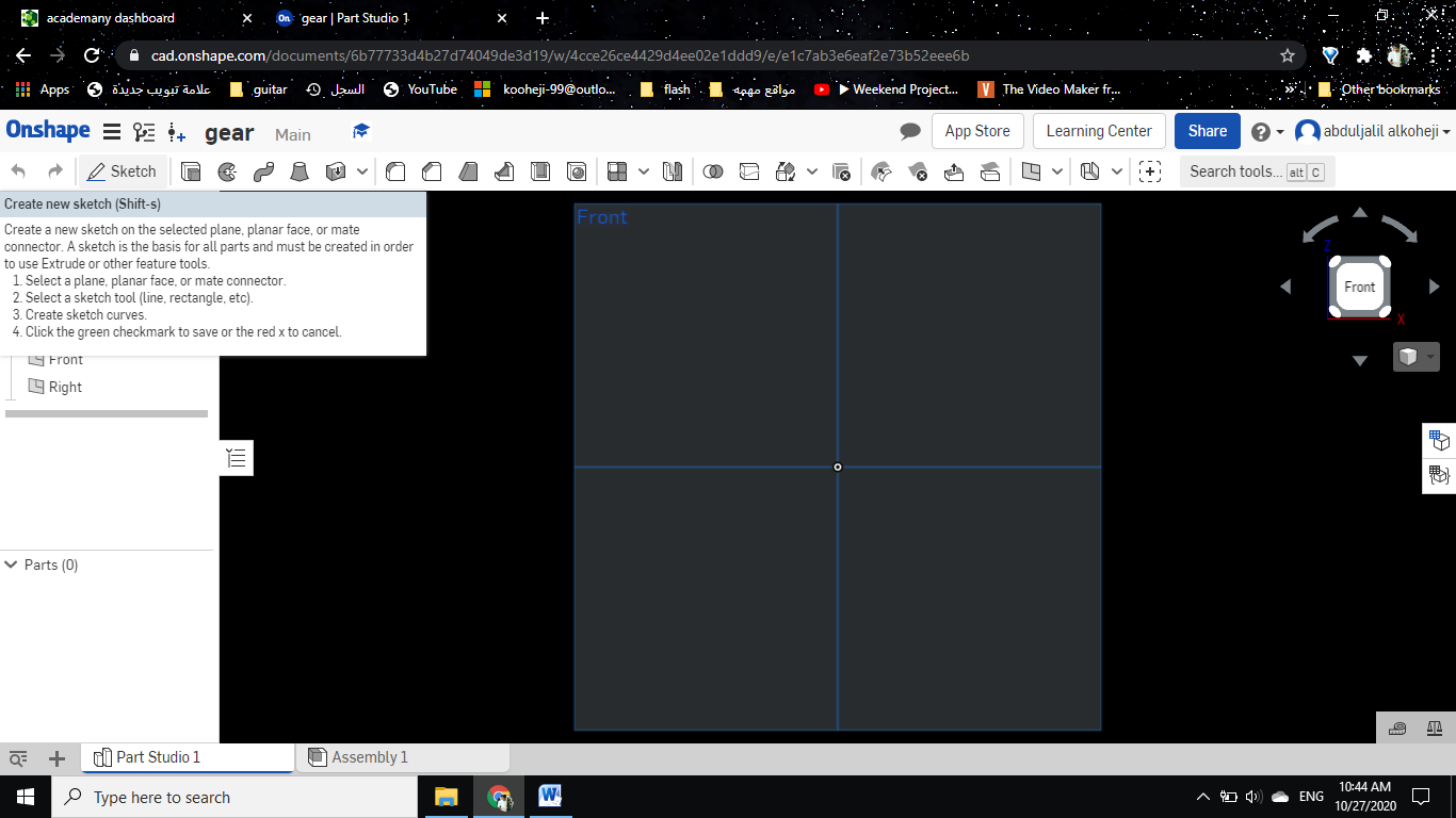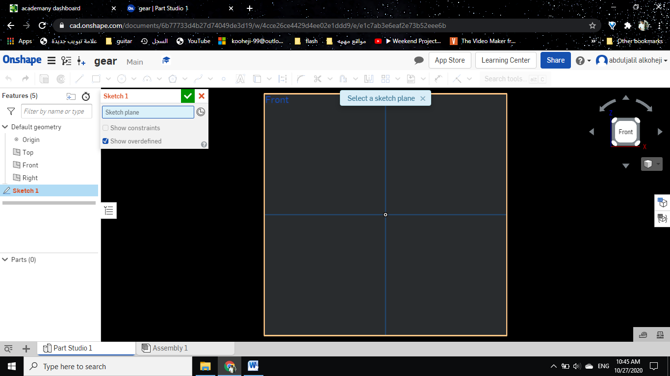 first you click in the “Sheetmetal” then click on “Create sketch” this will take to start your design in 2d